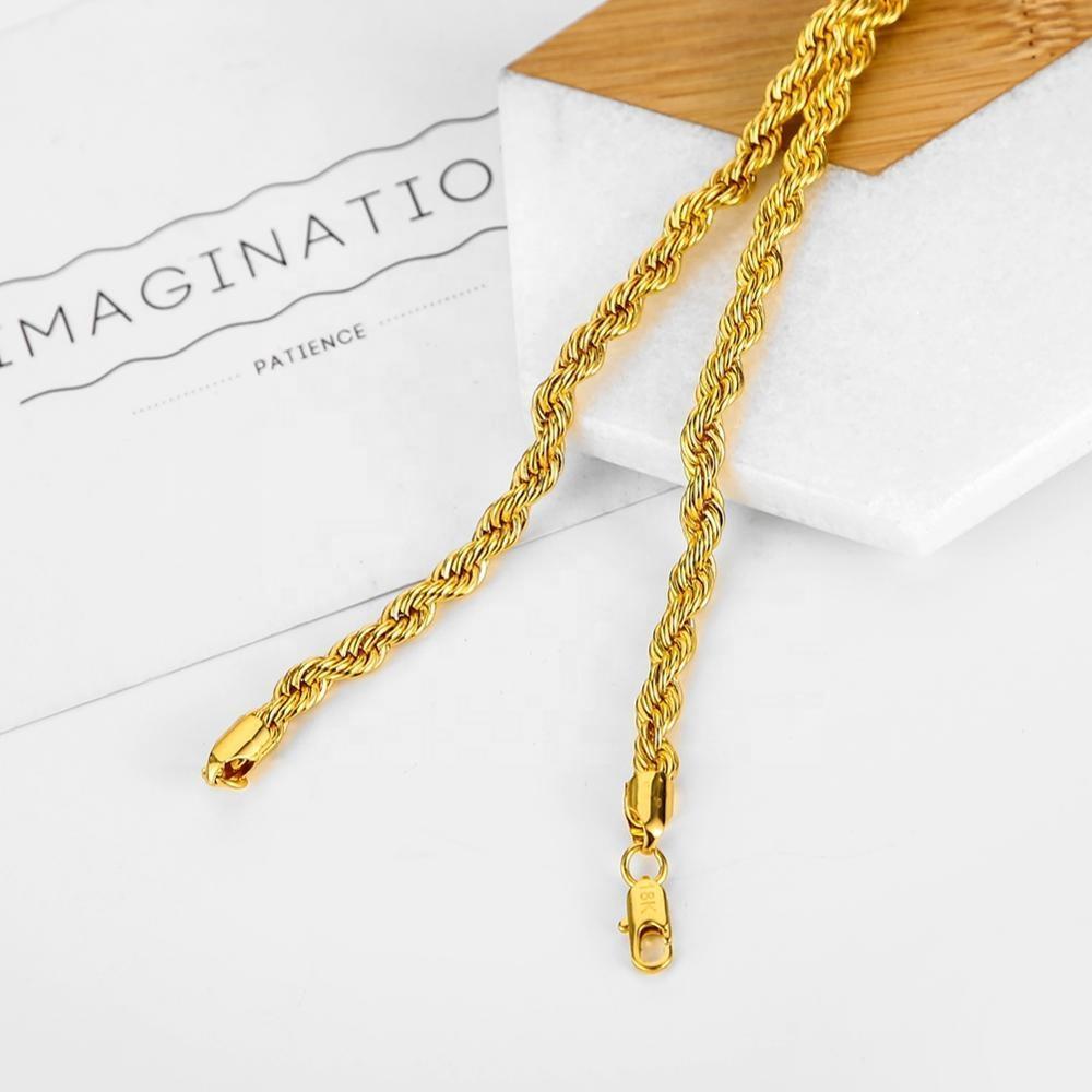 18K guldpläterad eller rostfritt stål snurrad lyxig kedja olika tjocklek