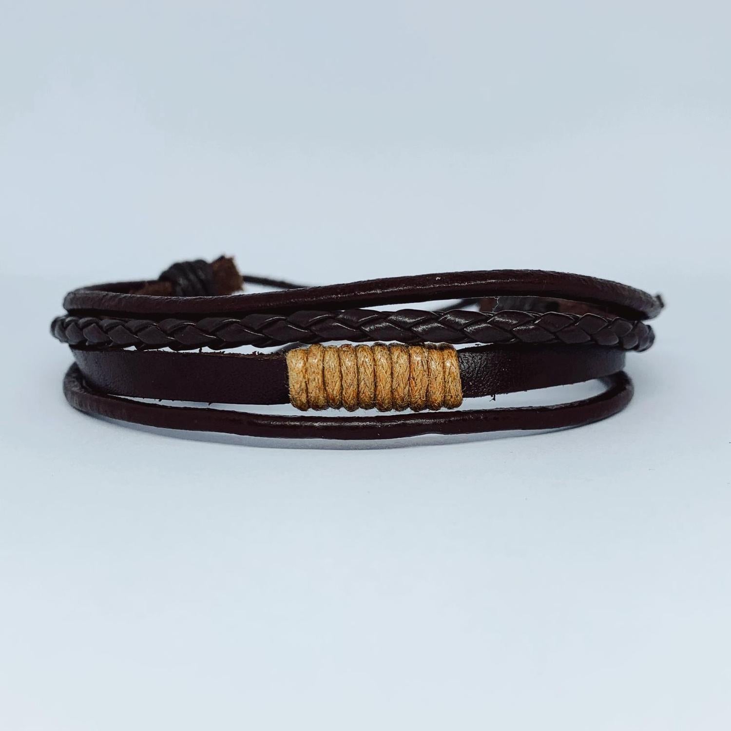 Fyra Handgjorda flätade armband i äkta läder i stil för män