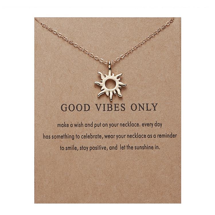 Good vibes only -halsband med sol 18K guldpläterad gåva vibrationer julklapp