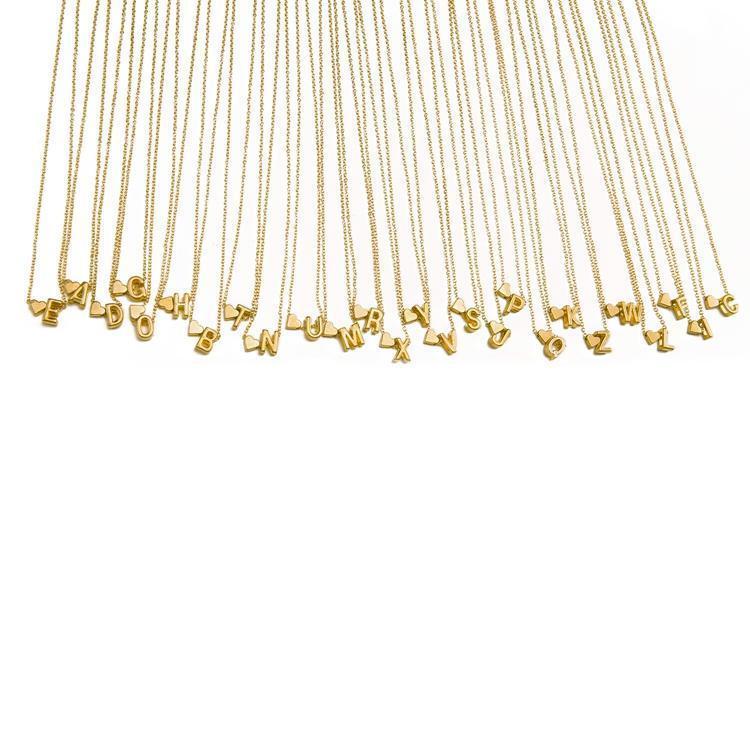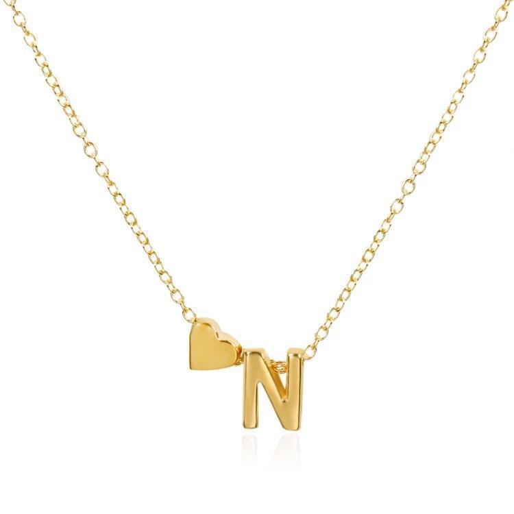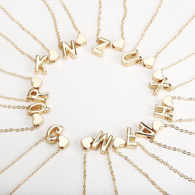 Guldpläterat halsband kedja med hjärta och bokstav