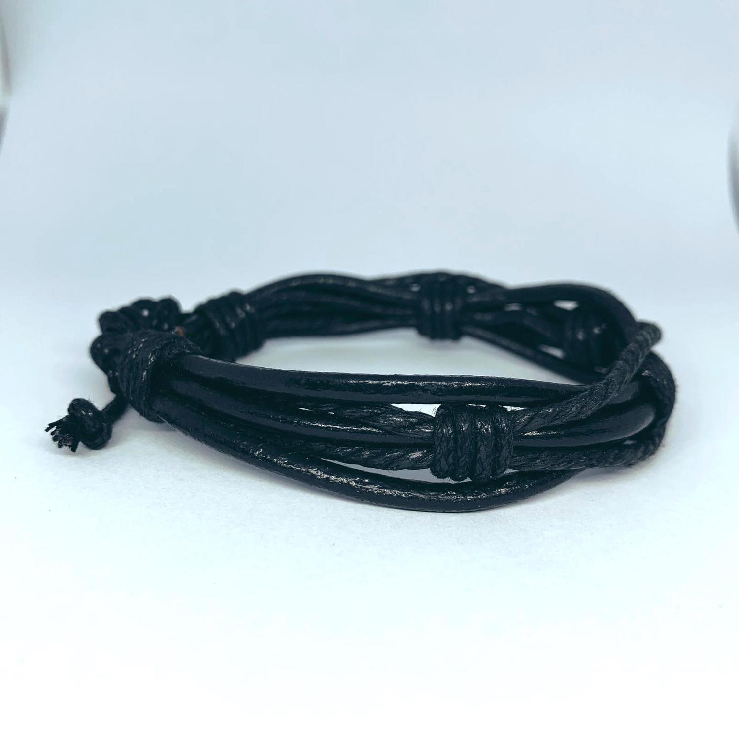 Handgjorda armband á 4 stk för män äkta läder flätat svart