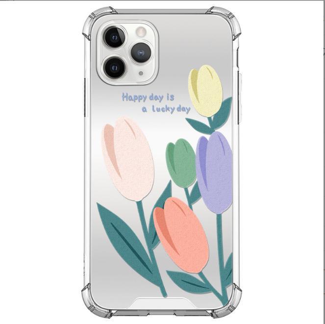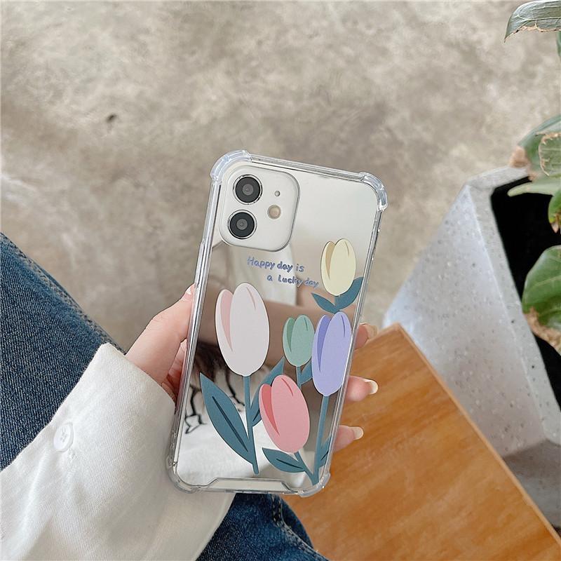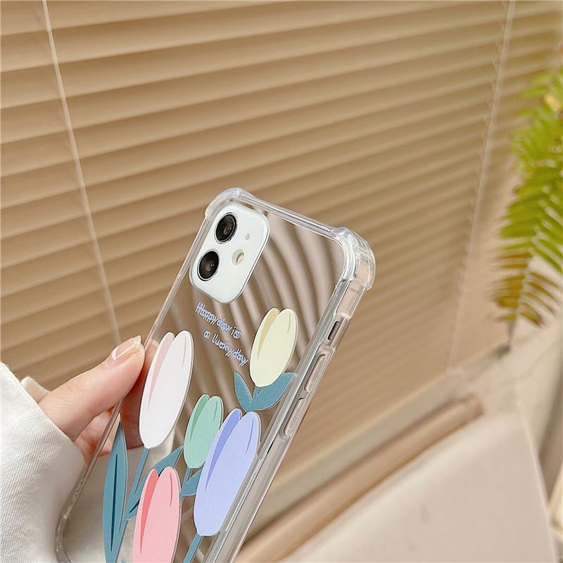 iPhone 13, Pro & Max spegelglas med vackra blommor tulpaner