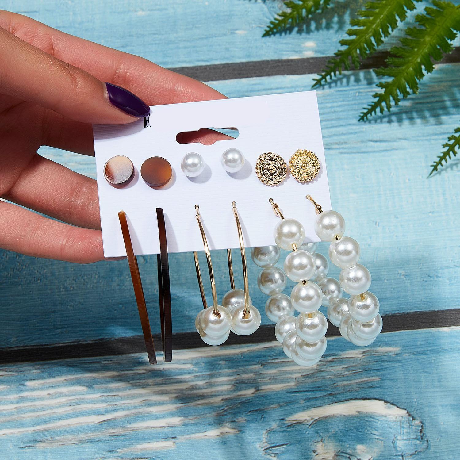 Örhängen set á 6 stk guldpläterade pärla guld hoops orientalisk