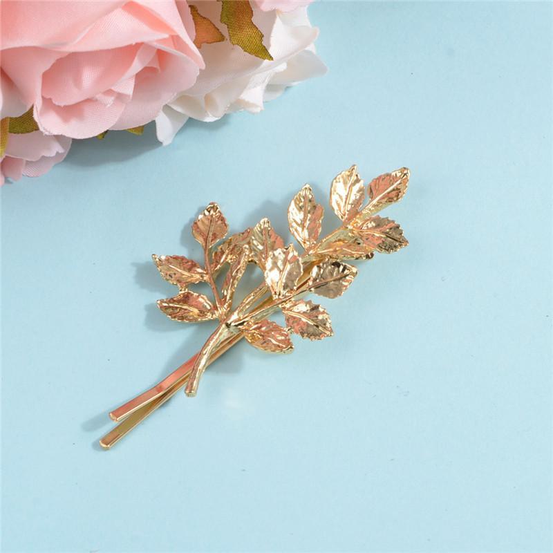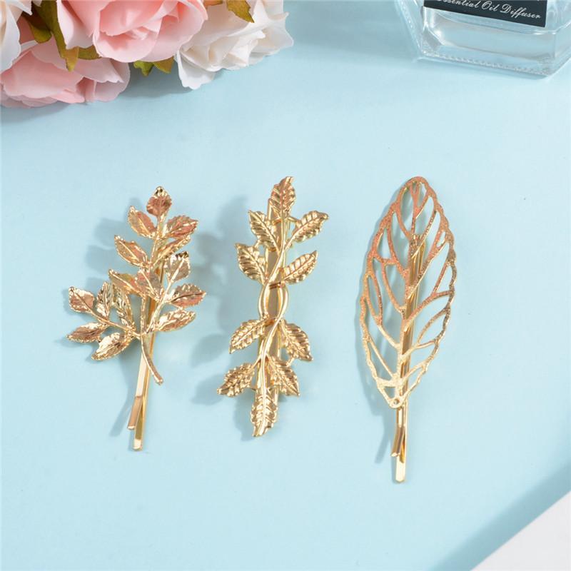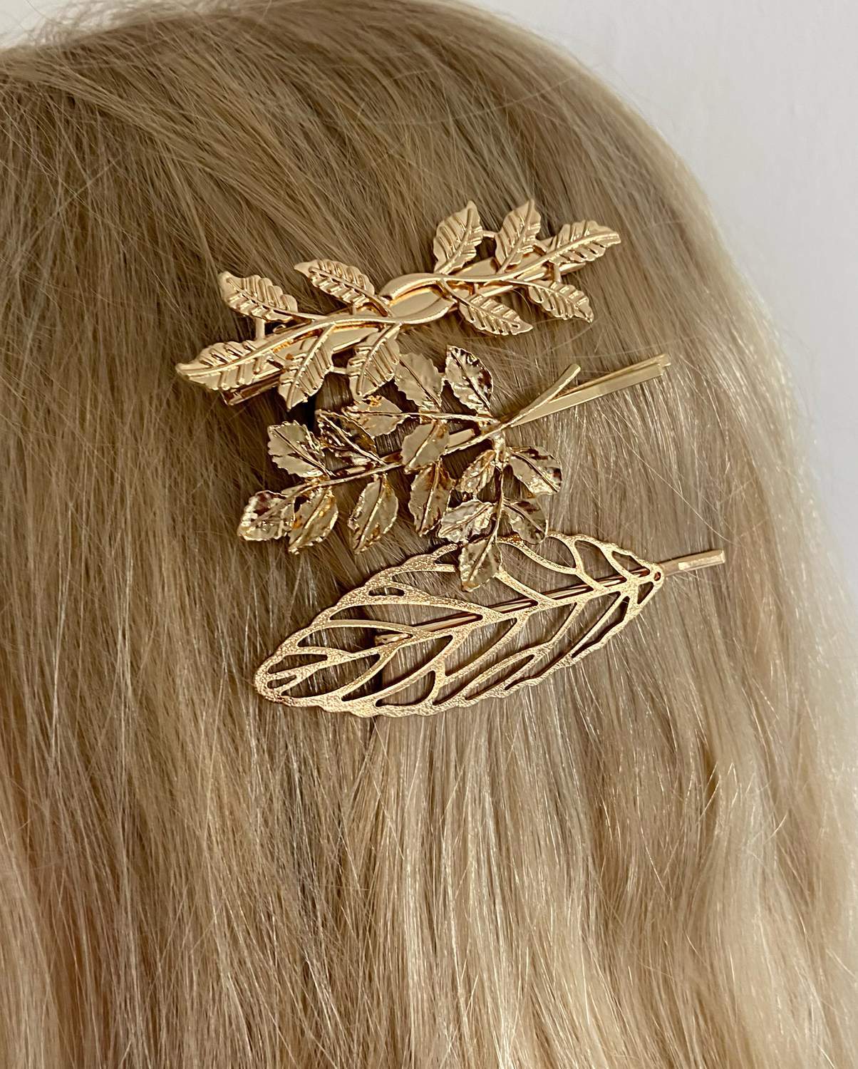 Otroligt vackra hårklämmor set 3 stk löv guld