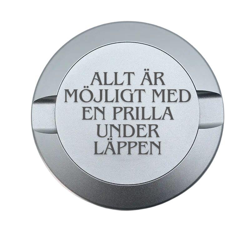 Snusdosa i aluminium för alla snus med tex ''allt är möjligt''