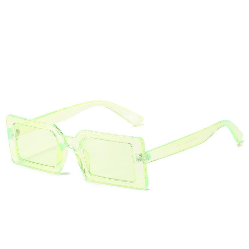 Trendiga solglasögon med rektangulära bågar i limegrönt glas