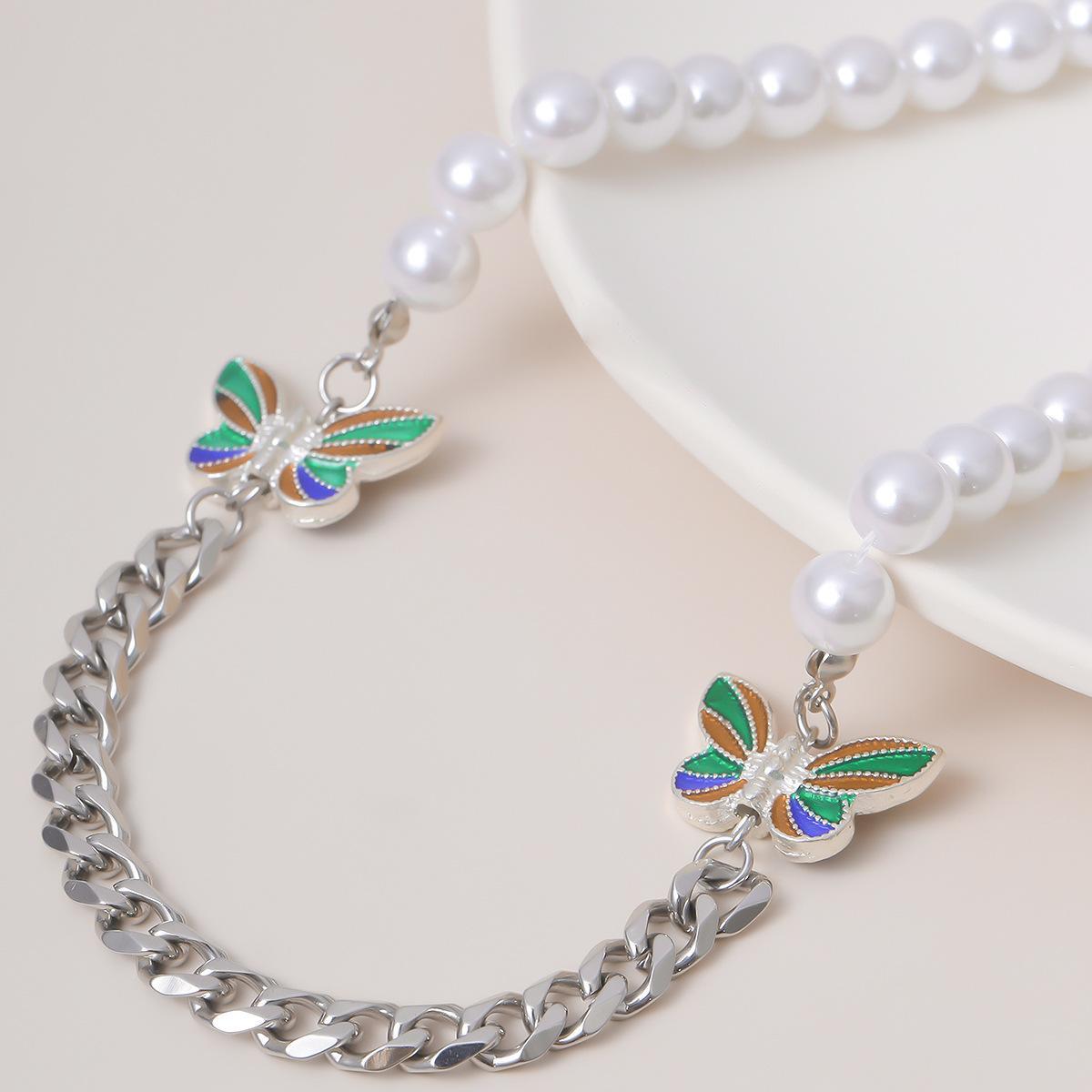 Unikt halsband med färgglada fjärilar, pärlor och kedja