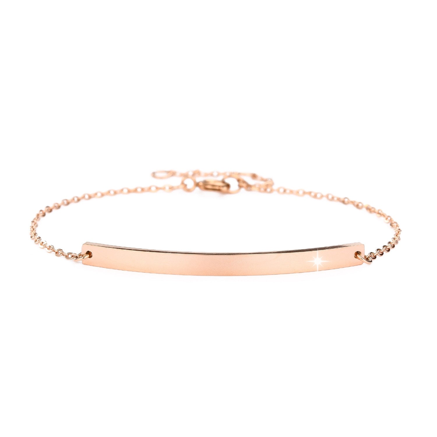 Stainless Steel Bracelet with Narrow Plate and Diamond Detail - Tray - Gold, Silver, Rose Gold