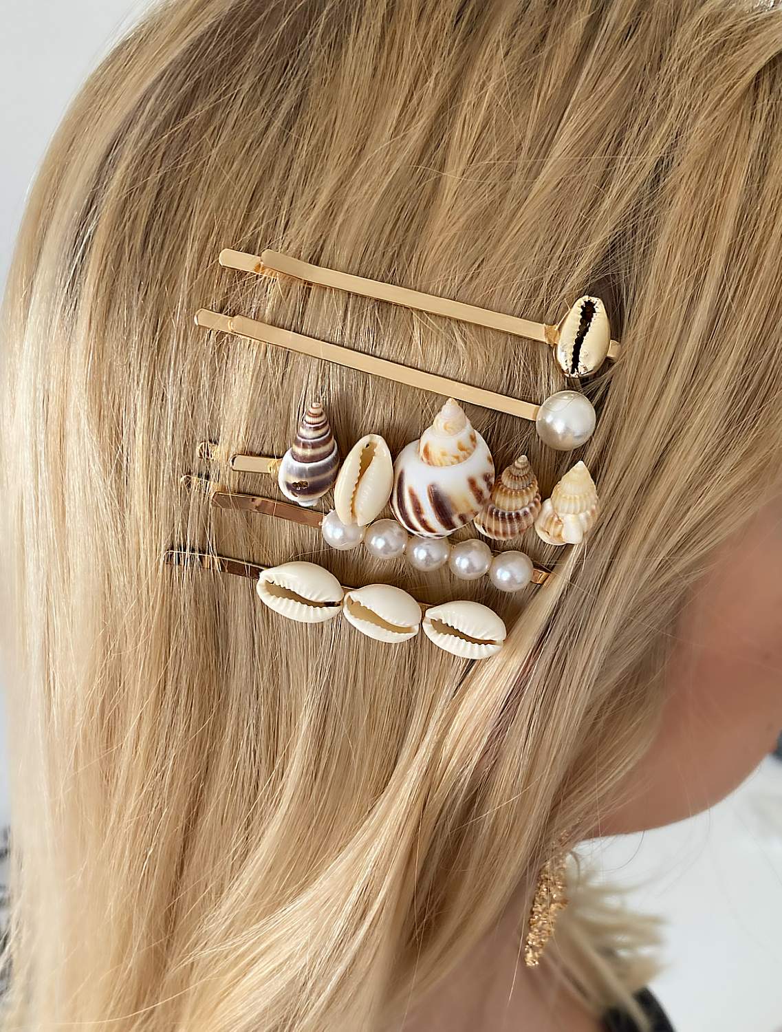 5-pack hairpins with shells and pearls