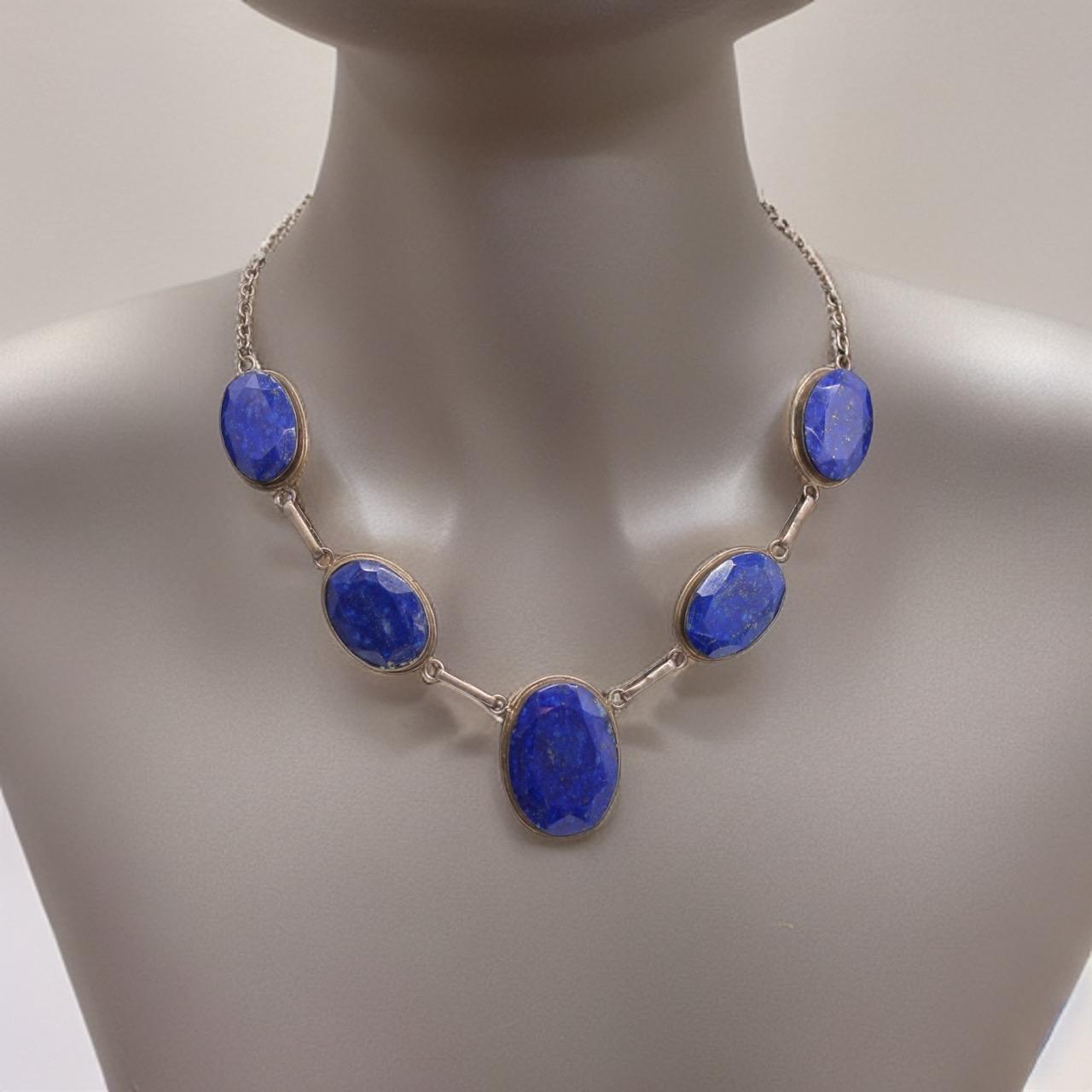 Lapis Lazuli Jewelry Set in 925 Silver: Necklace (Adjustable 47 cm) and Bracelet (17 cm)