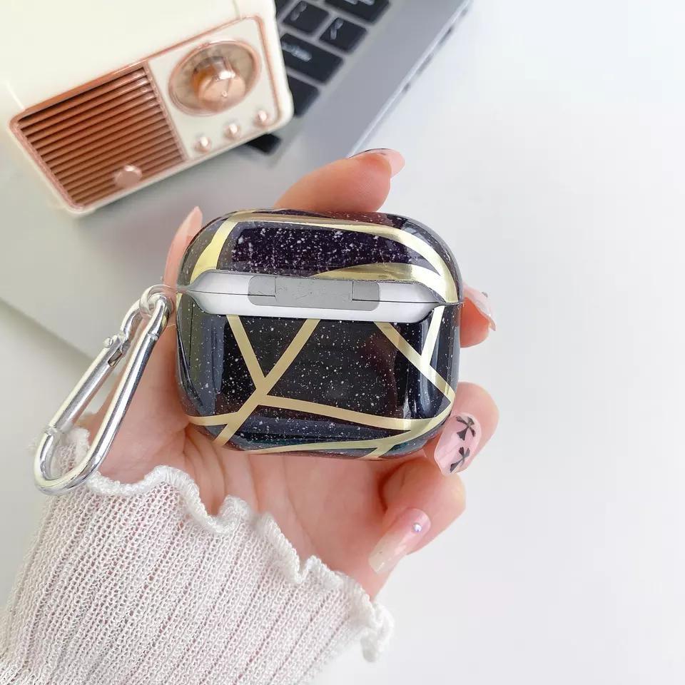 Airpods Tredje Generationen Skal i lyxigt marmor 2022 svart krok