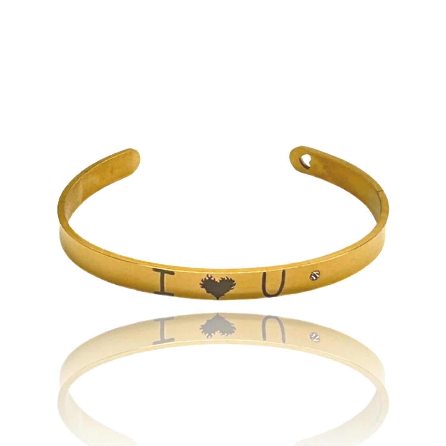 Bracelet ''I love U'' with burning heart valentine's day gold