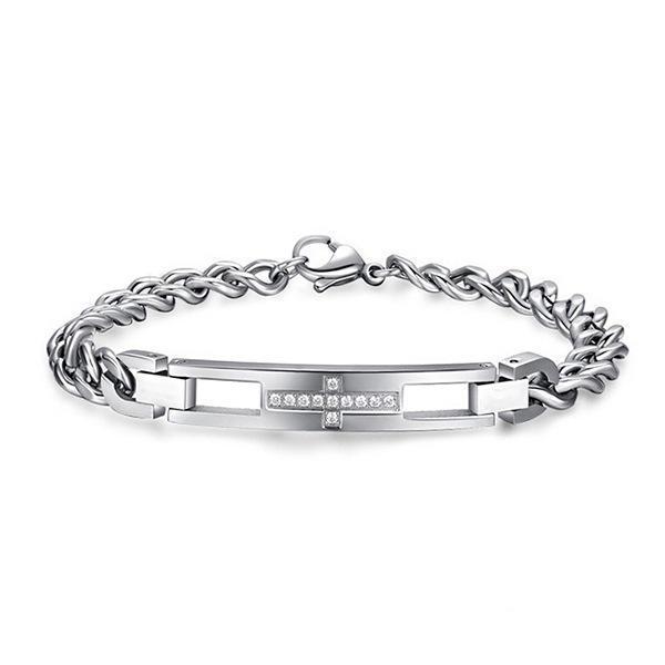 Armband i rostfritt stål - kristet kors med zirkonia-diamanter