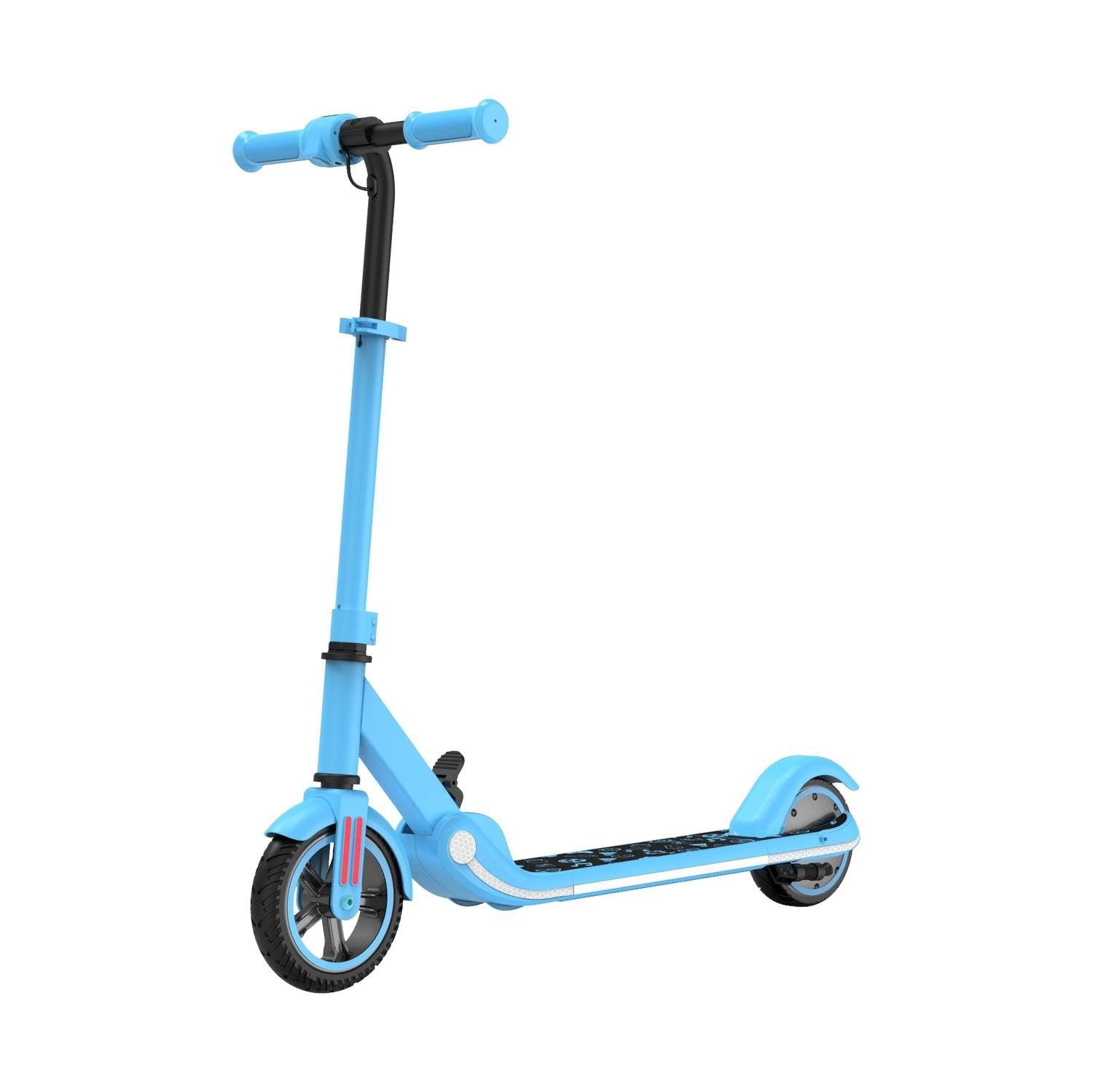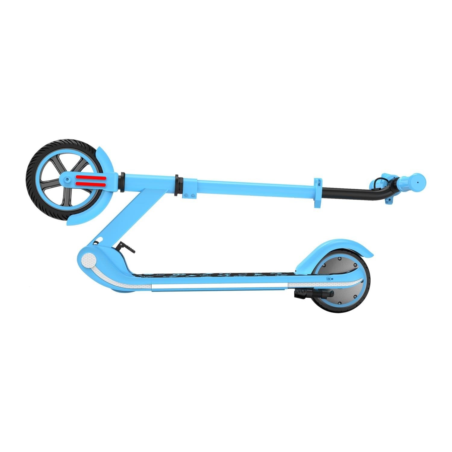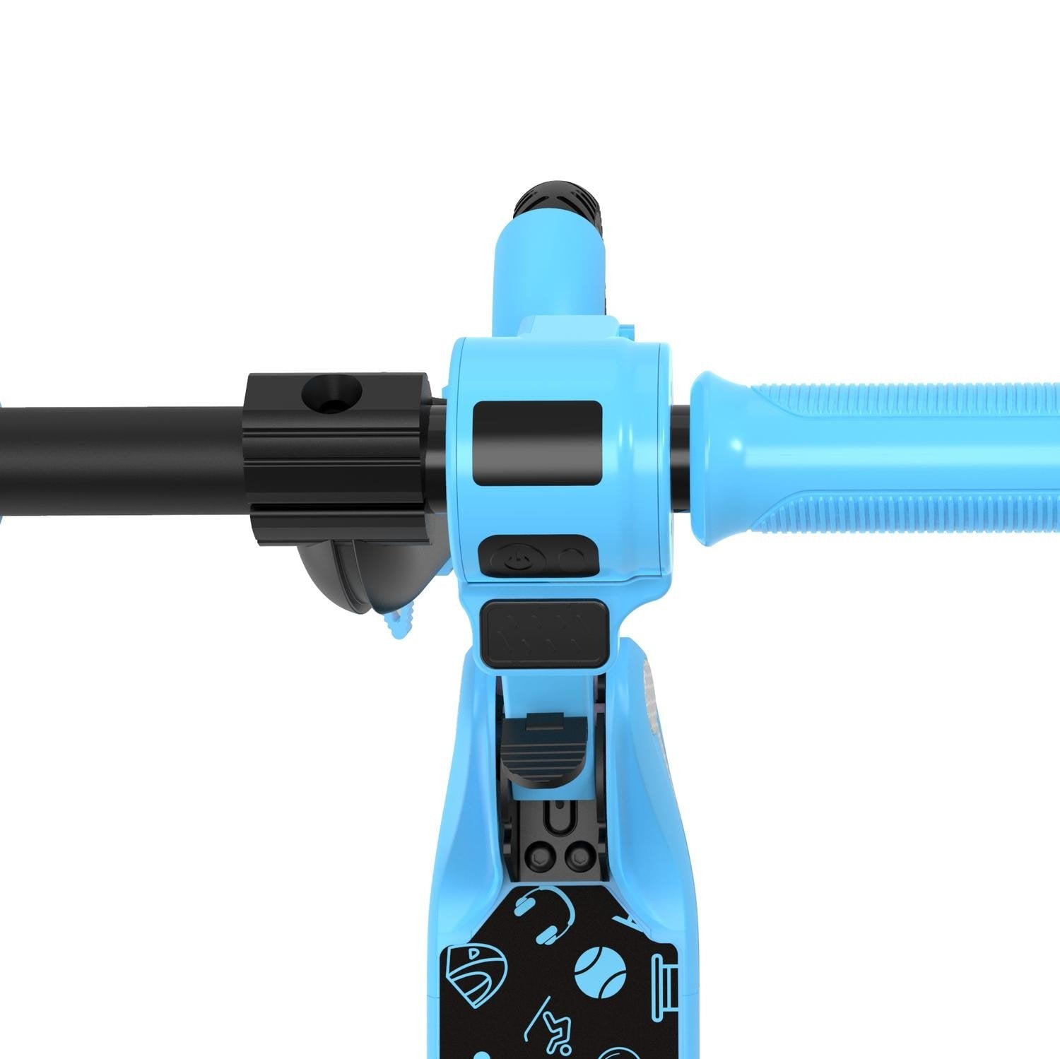 Blå elscooter för barn lätt fällbar med 15 km/h maxfart justerbart styre