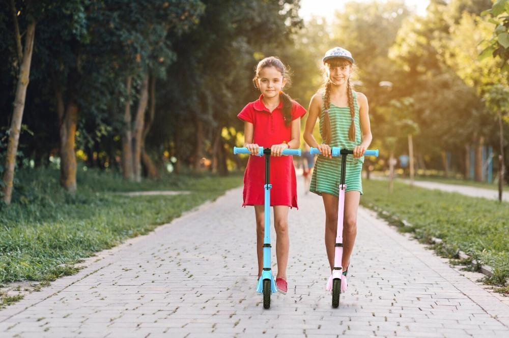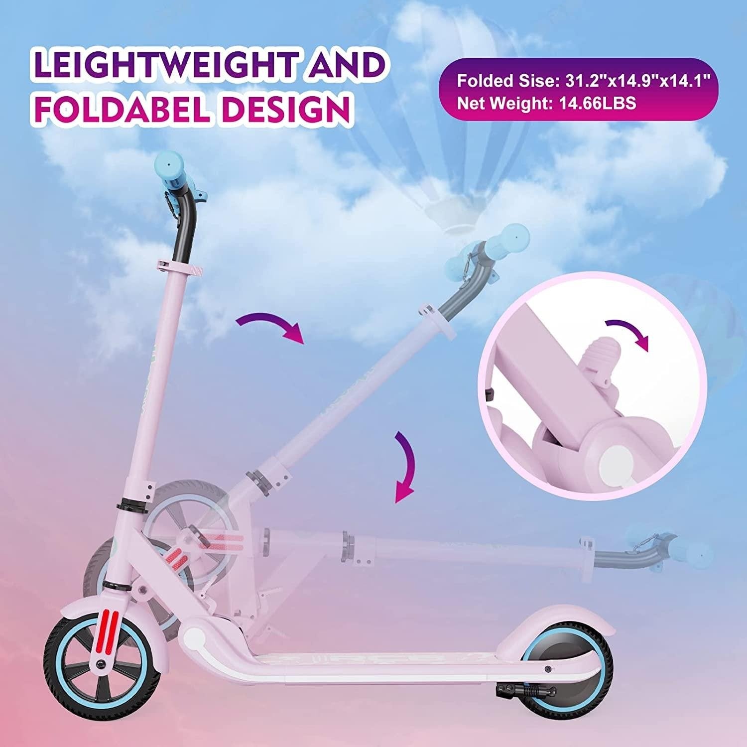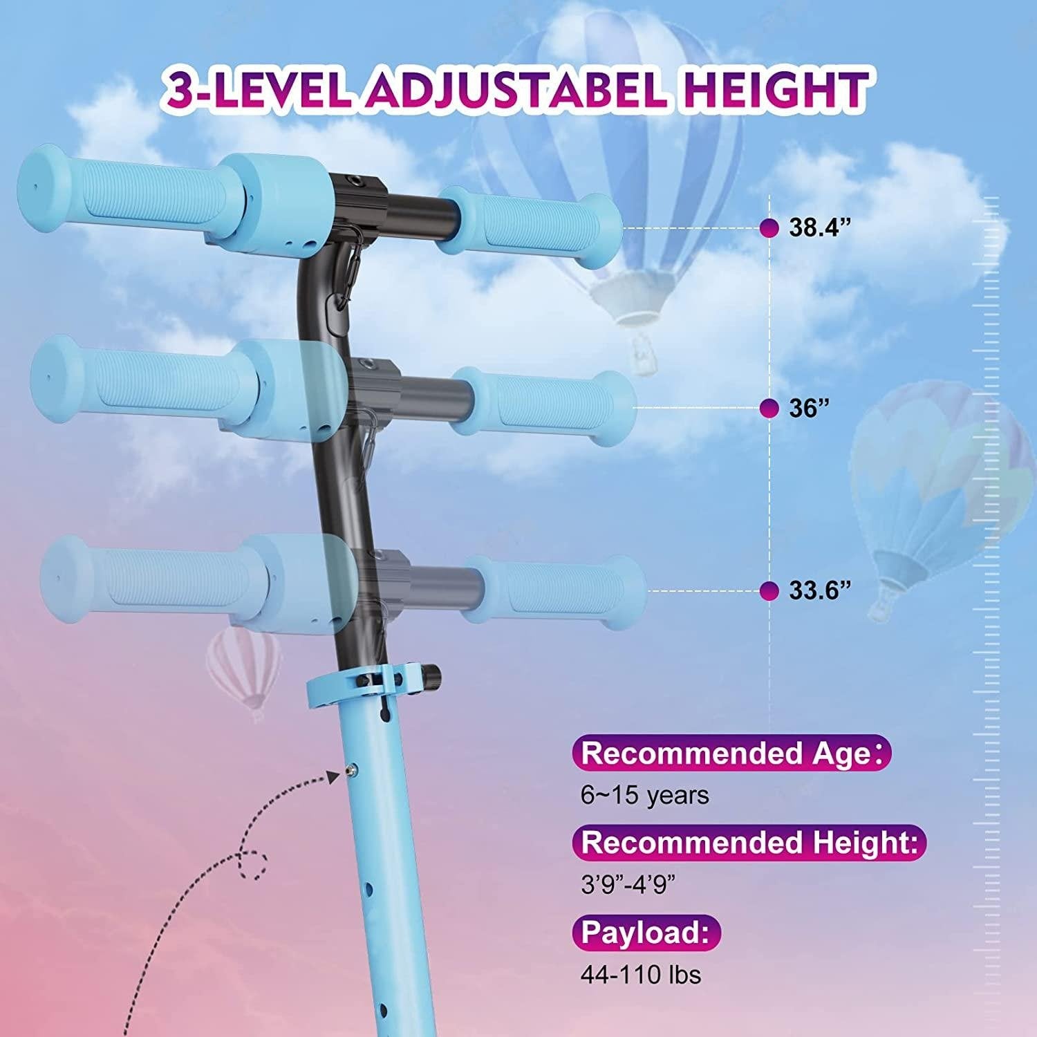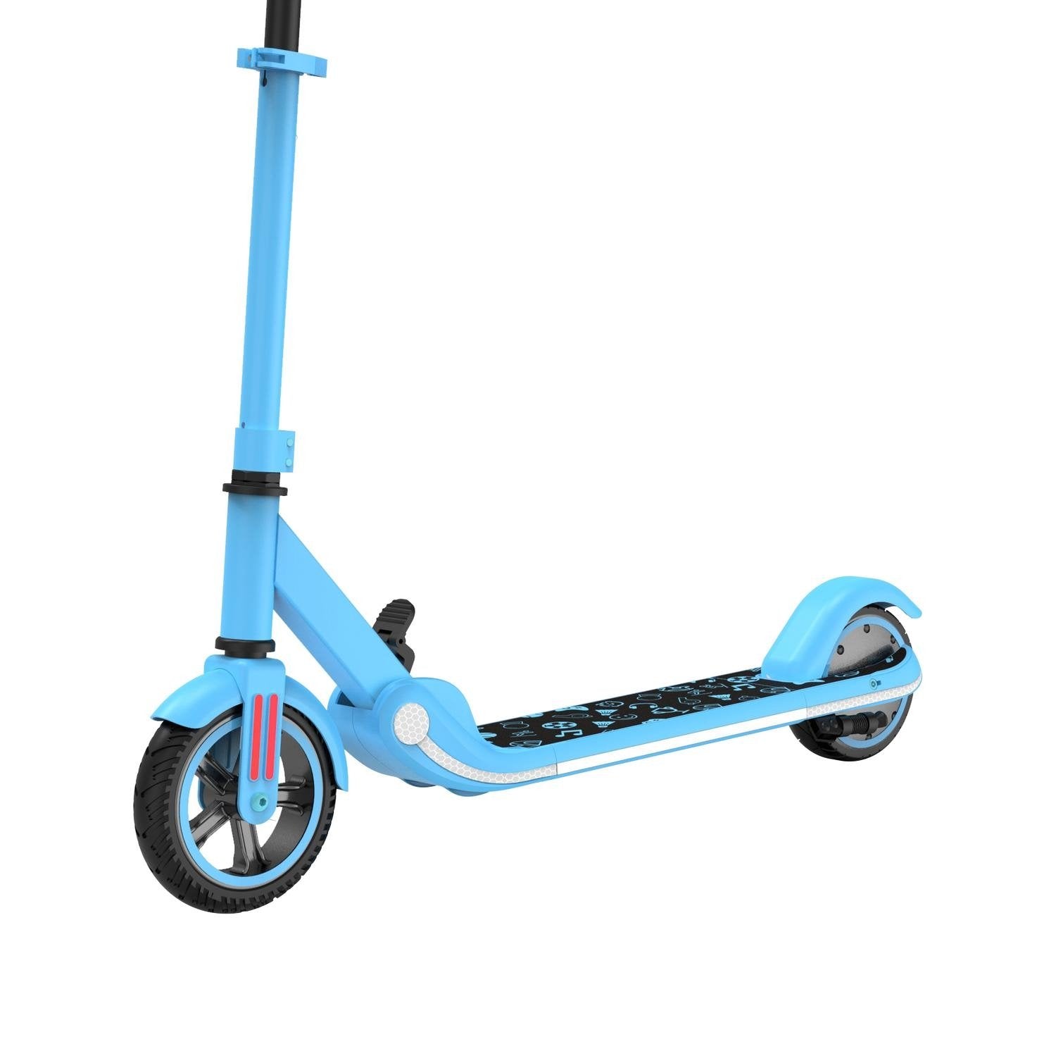 Blå elscooter för barn lätt fällbar med 15 km/h maxfart justerbart styre