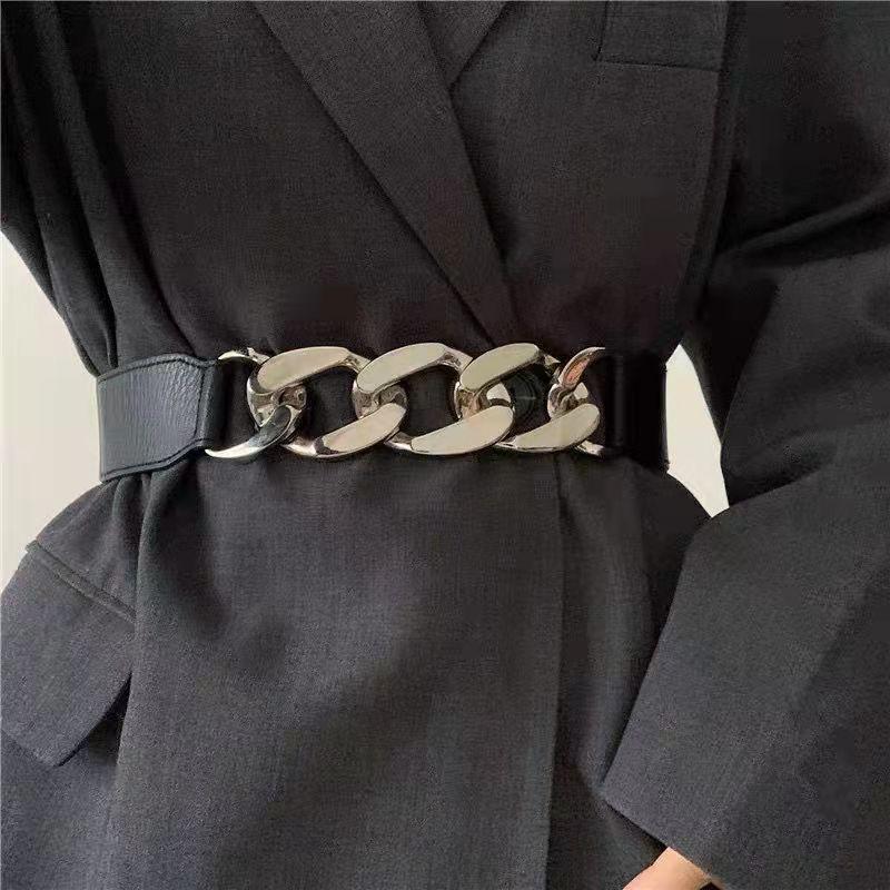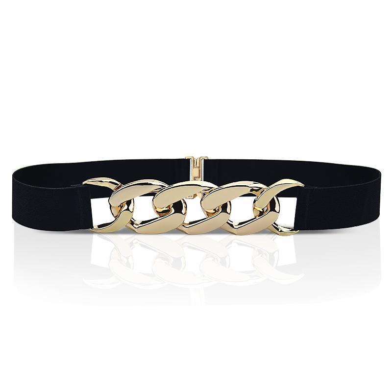 Elastiskt svart skärp för midjan med kedja i guld eller silver