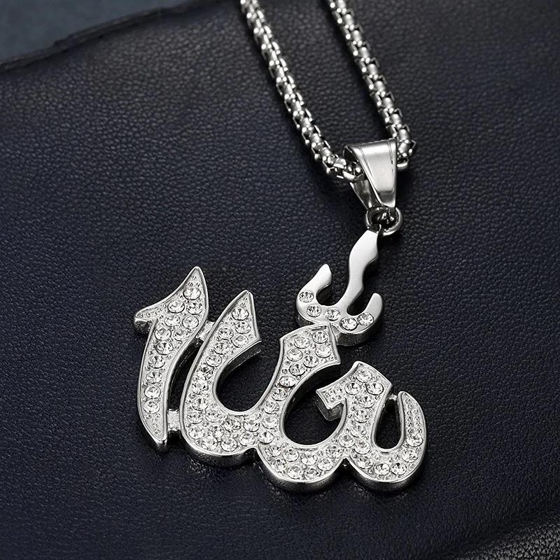 Elegant Halsband med Allah-pendant i Mellanösternsstil och Kristall CZ – 60 cm Långt