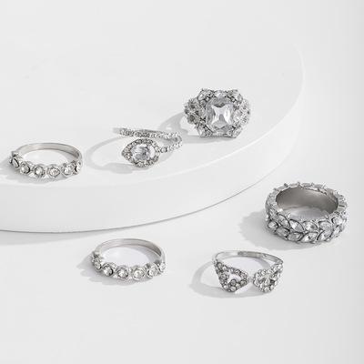 Elegant set m. 6 stk ringar i silver droppformad silverpläterad