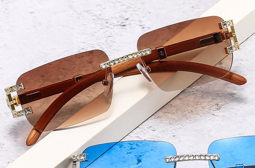 Exklusiva solglasögon m. diamanter strass dekoration trä 90-tal