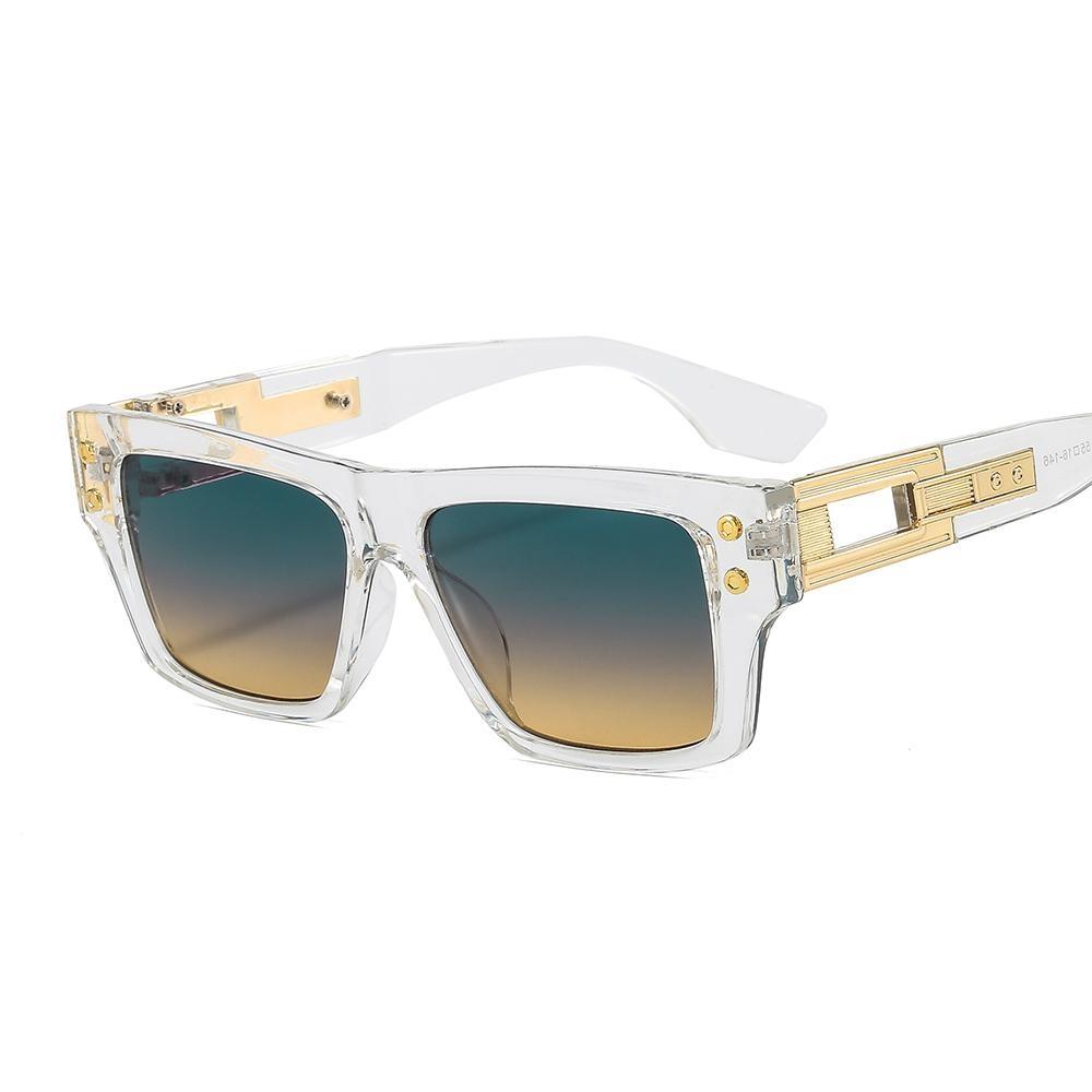 Exklusiva solglasögon med breda transparenta skalmar grönt glas