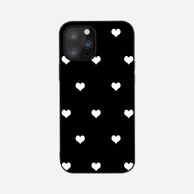 Fint skal för alla iPhone 14 modeller svart med vita hjärtan
