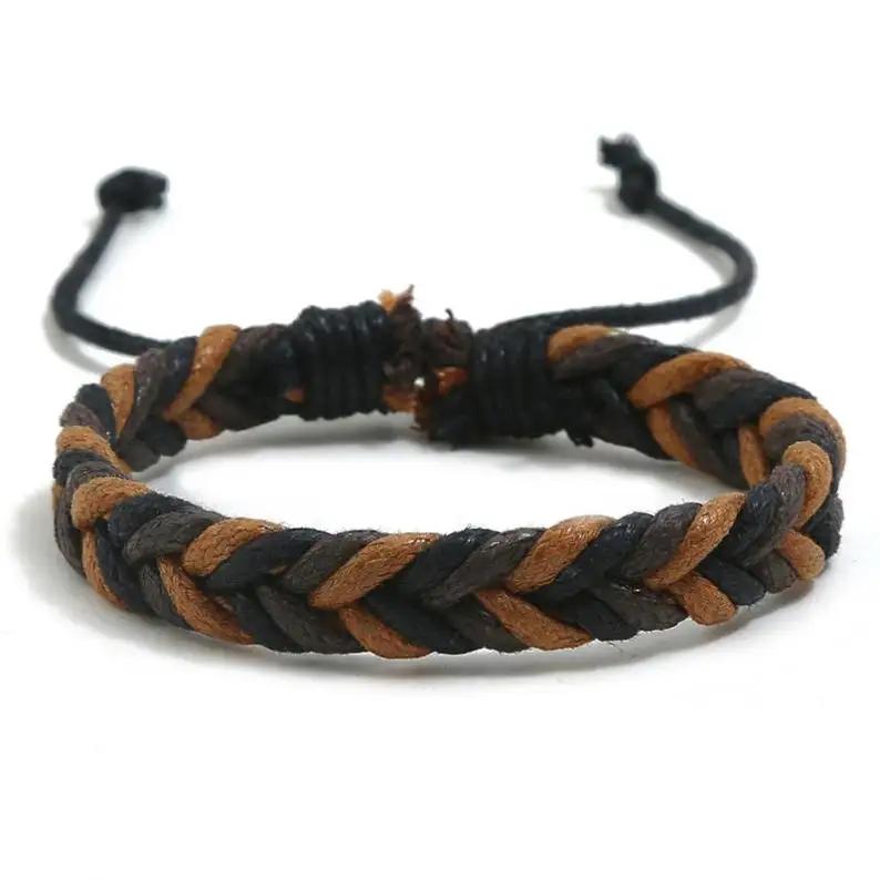 Genuint läder justerbart jordiga färger armband för män - flätat