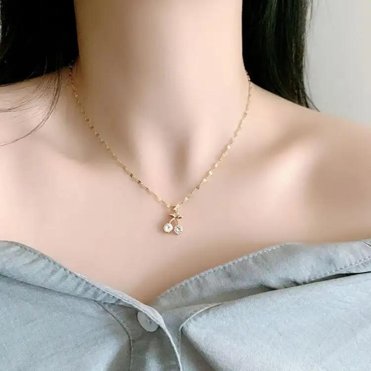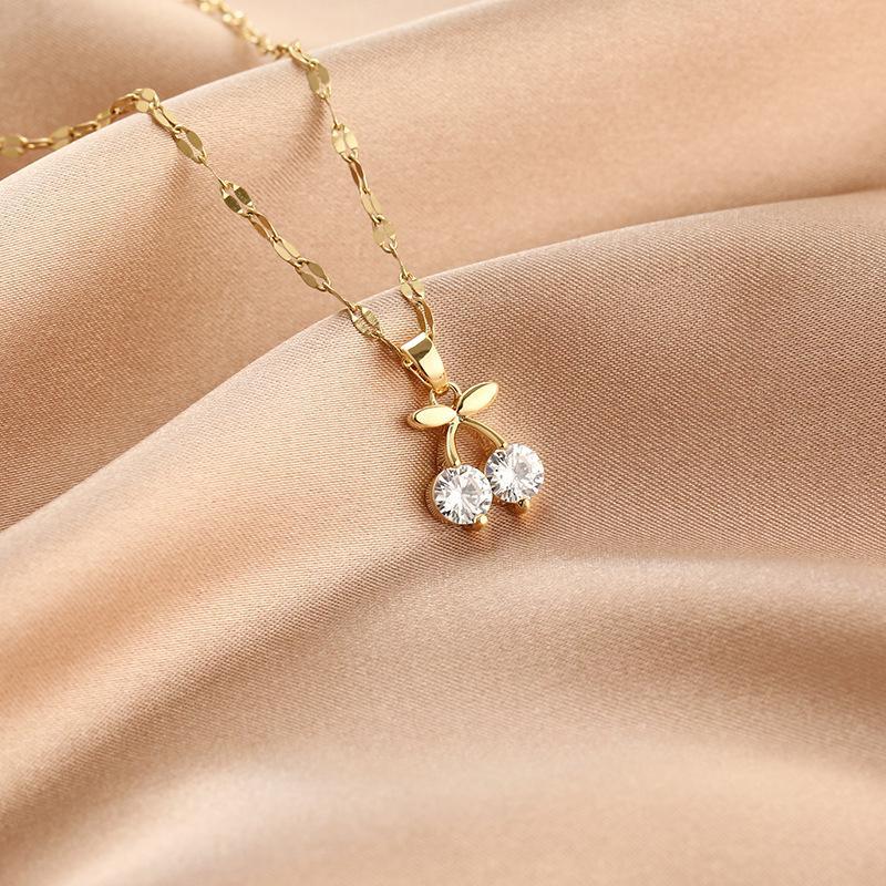 Guldpläterat halsband kedja med diamanter körsbär gåva