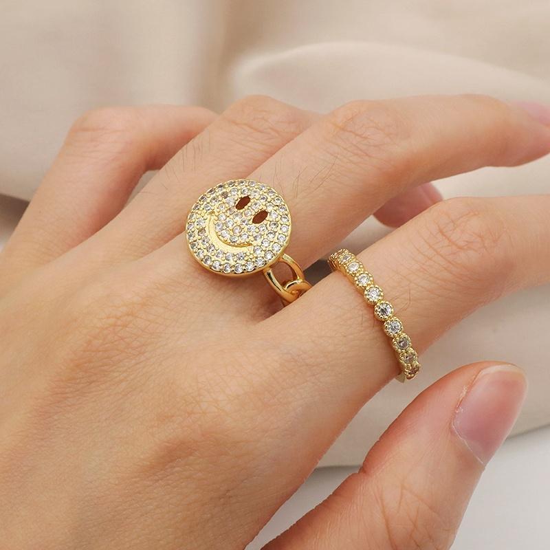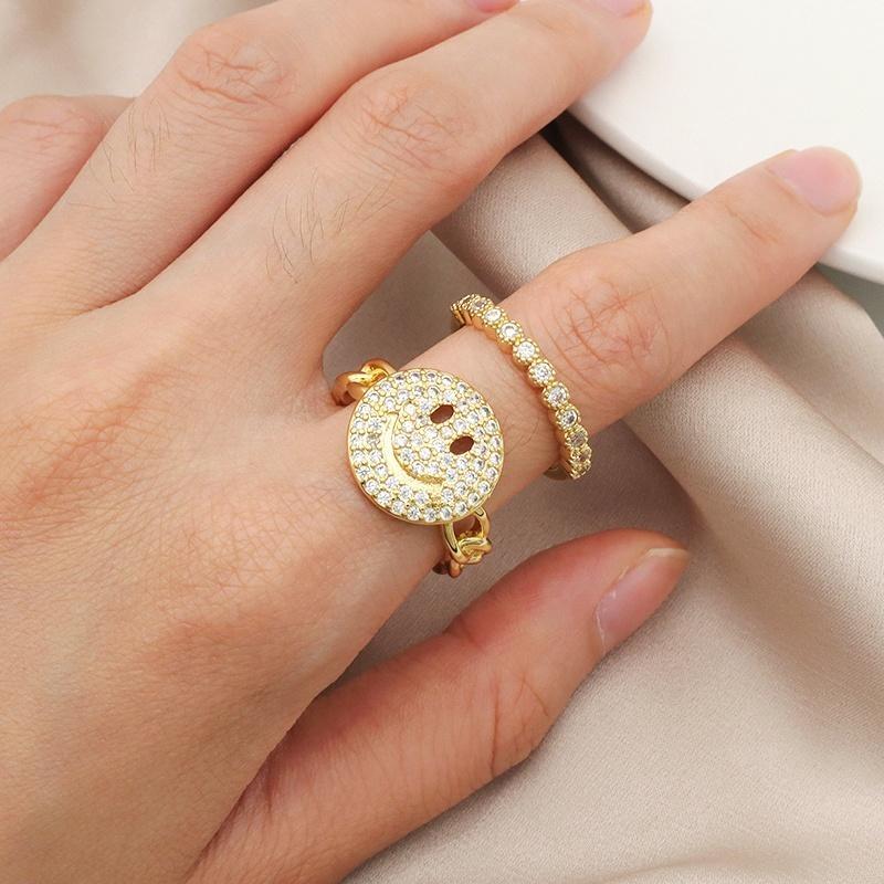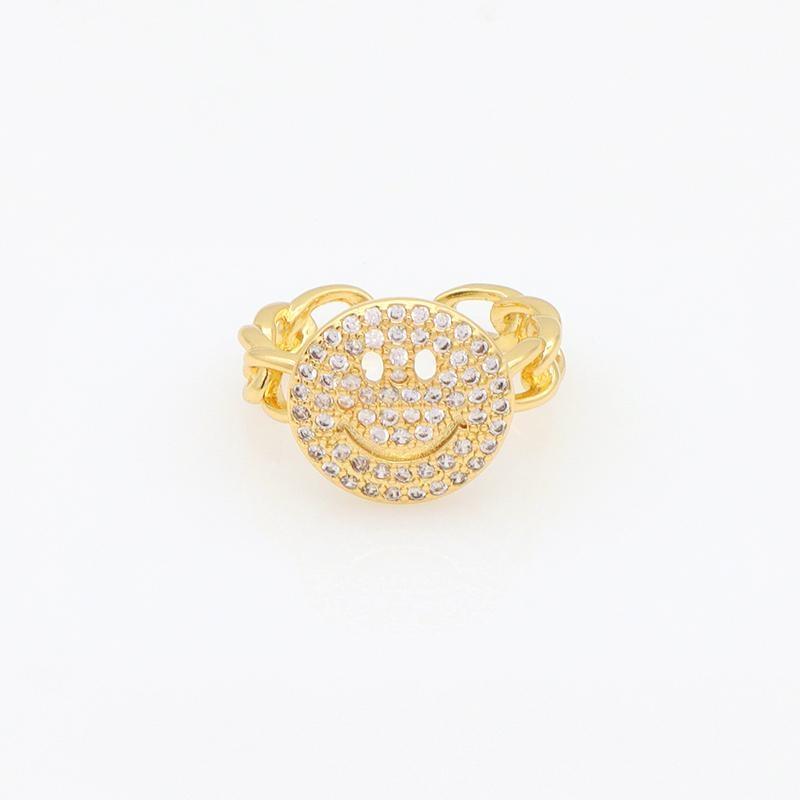 Ring på kedja med stor glad smiliey och zircon-stenar