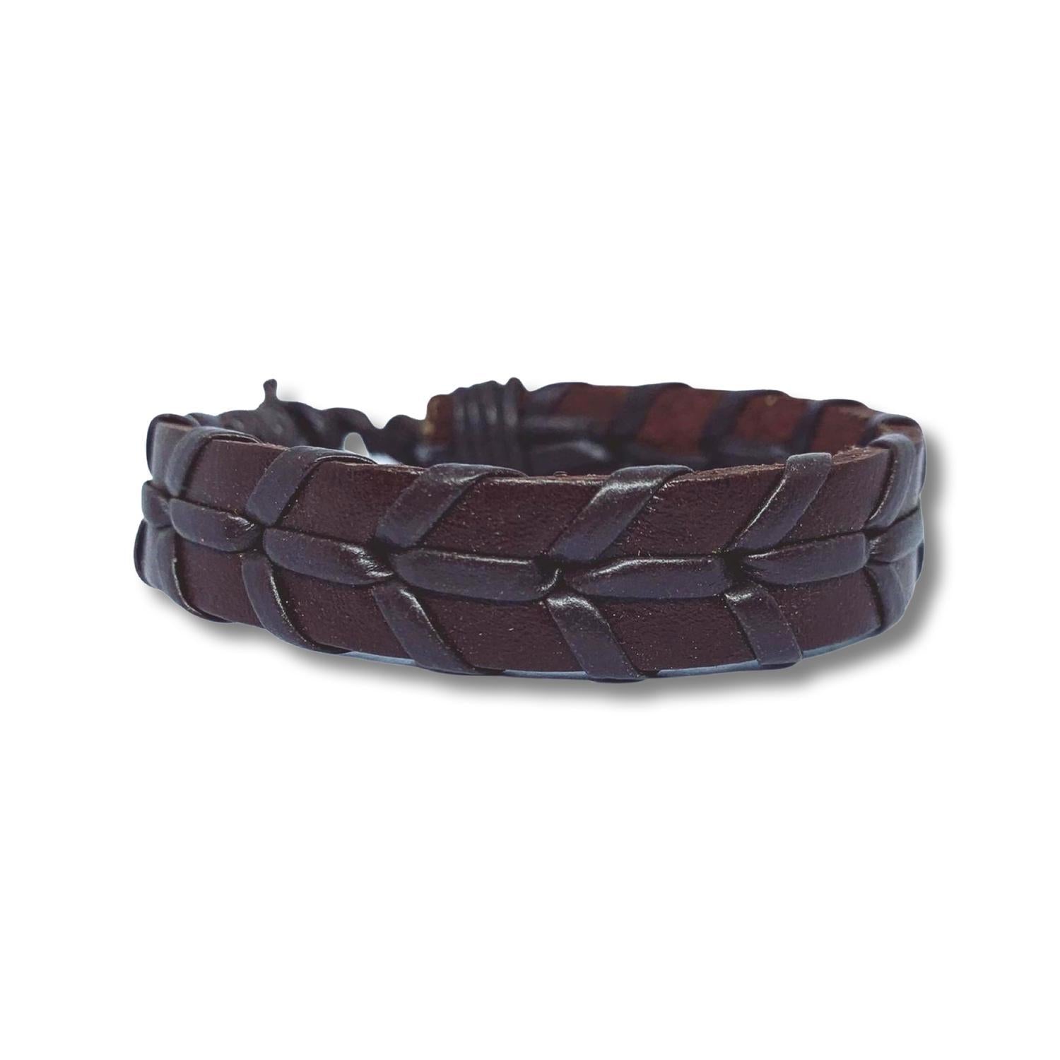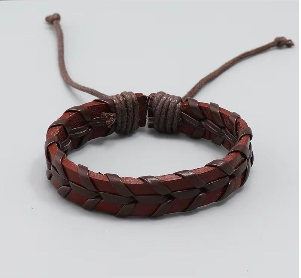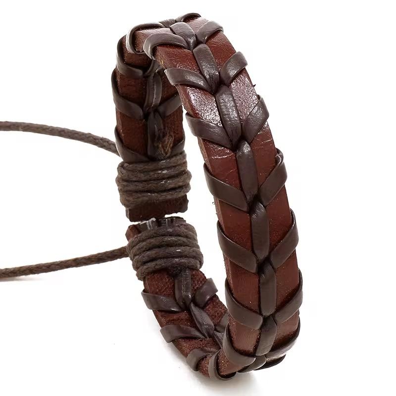 Handgjort flätat armband för män äkta läder i stil brun röd