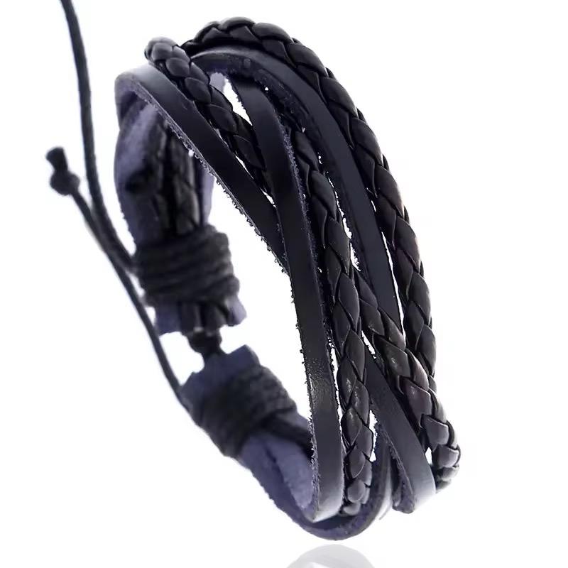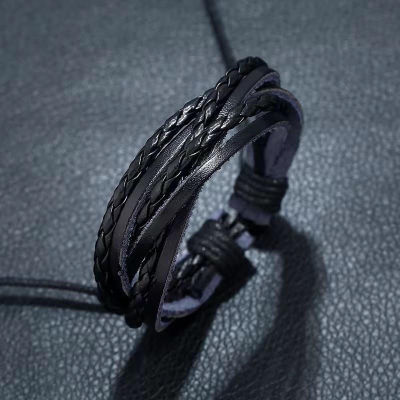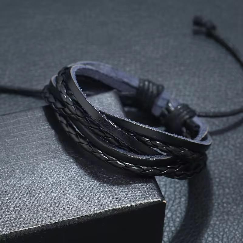 Handgjort flätat tvinnat armband för män äkta läder i stil brun
