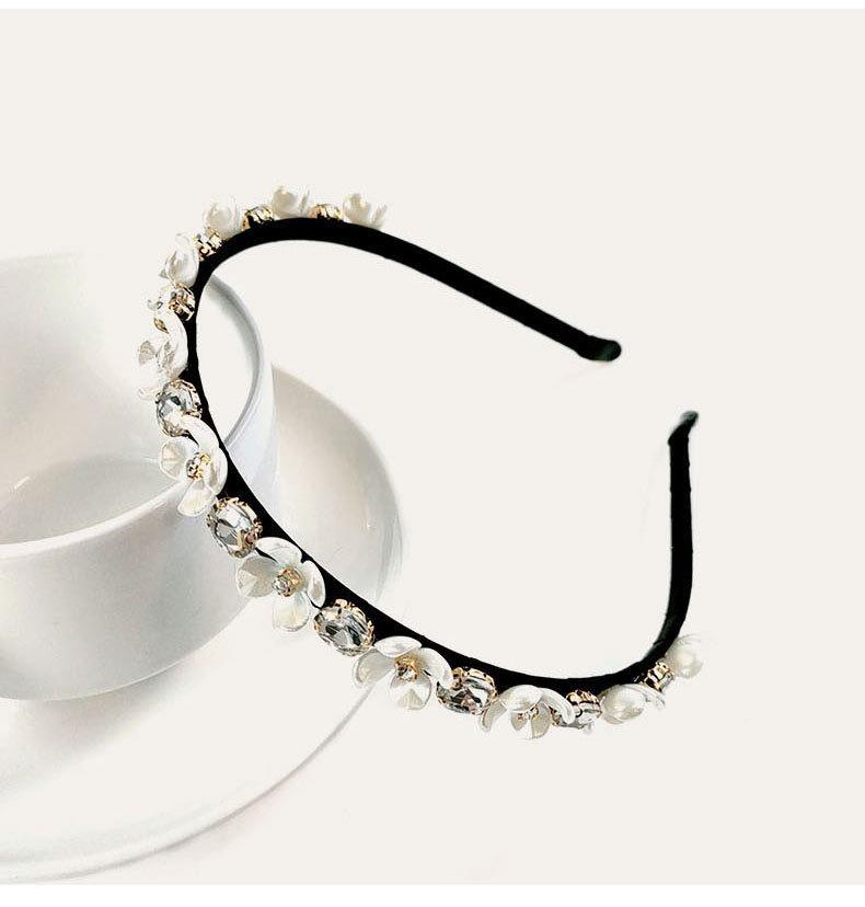 Handgjort Lyxigt svart diadem med vita blommor och diamanter