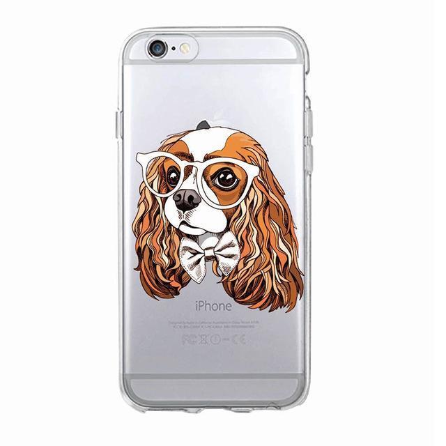 iPhone 12, 12 Pro & Max transparent skal hund med vita glasögon