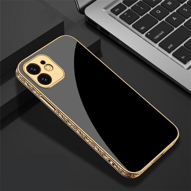 iPhone 12 lyxigt glas-skal guld & silver barock elegant svart