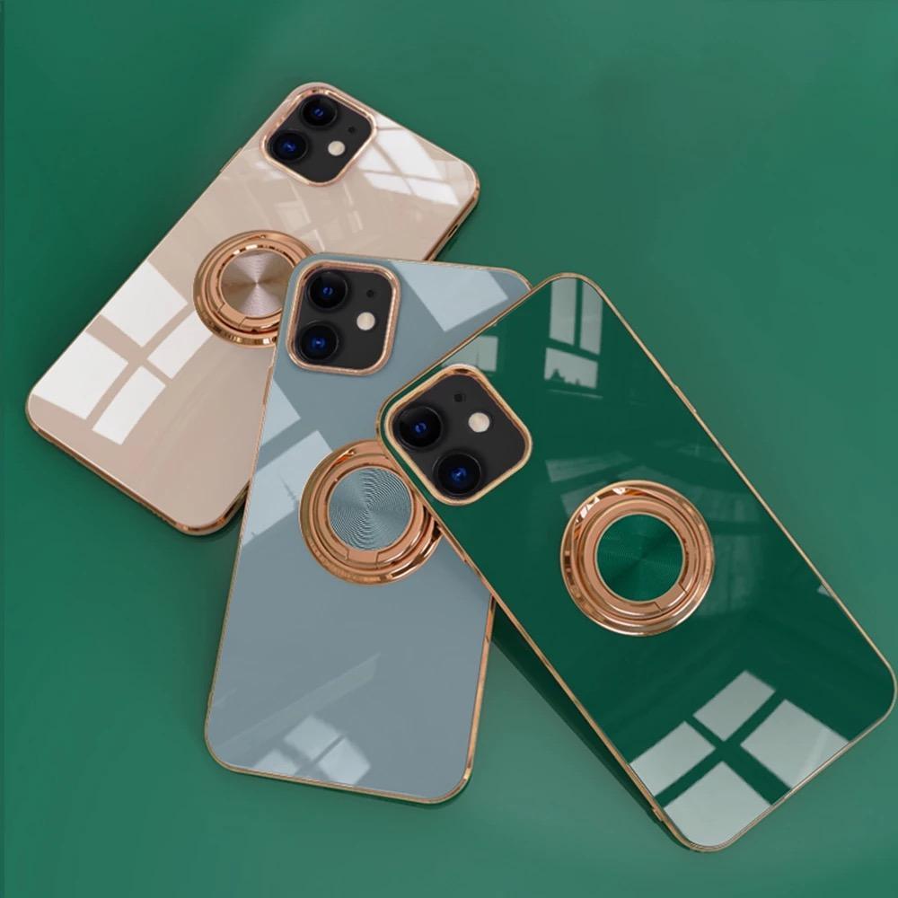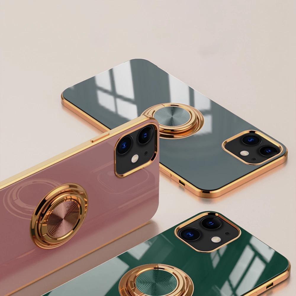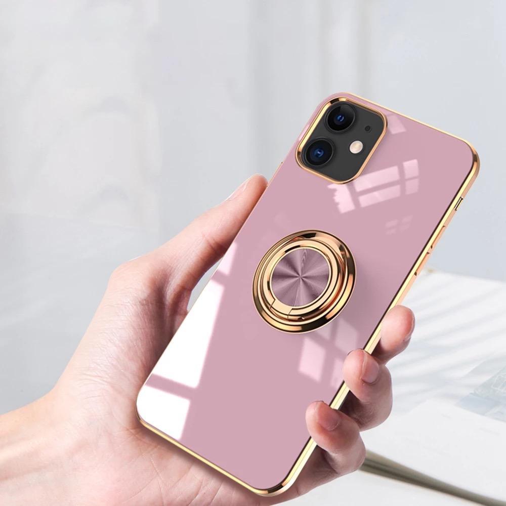 ‘iPhone 12 och iPhone 12 Pro‘ Skal Lyxigt Stilrent med ring ställ-funktion Guld