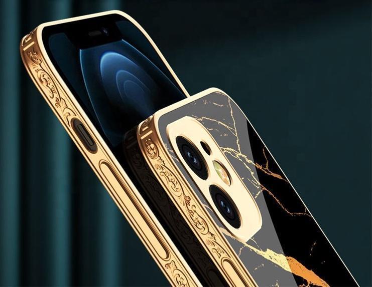 iPhone 12 Pro lyxigt glas-skal guld marmormönster svart vit
