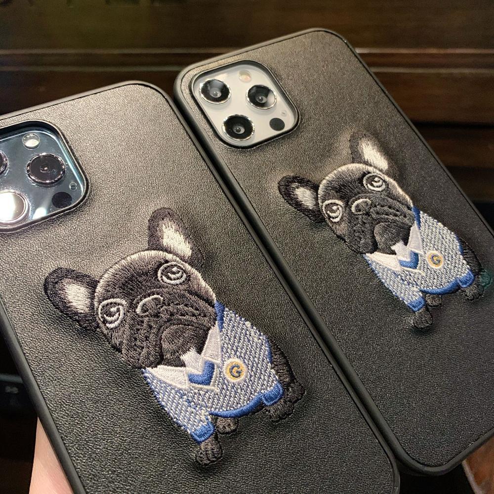 iPhone 12 Pro Max Skal med broderad mops konstgjort läder hund