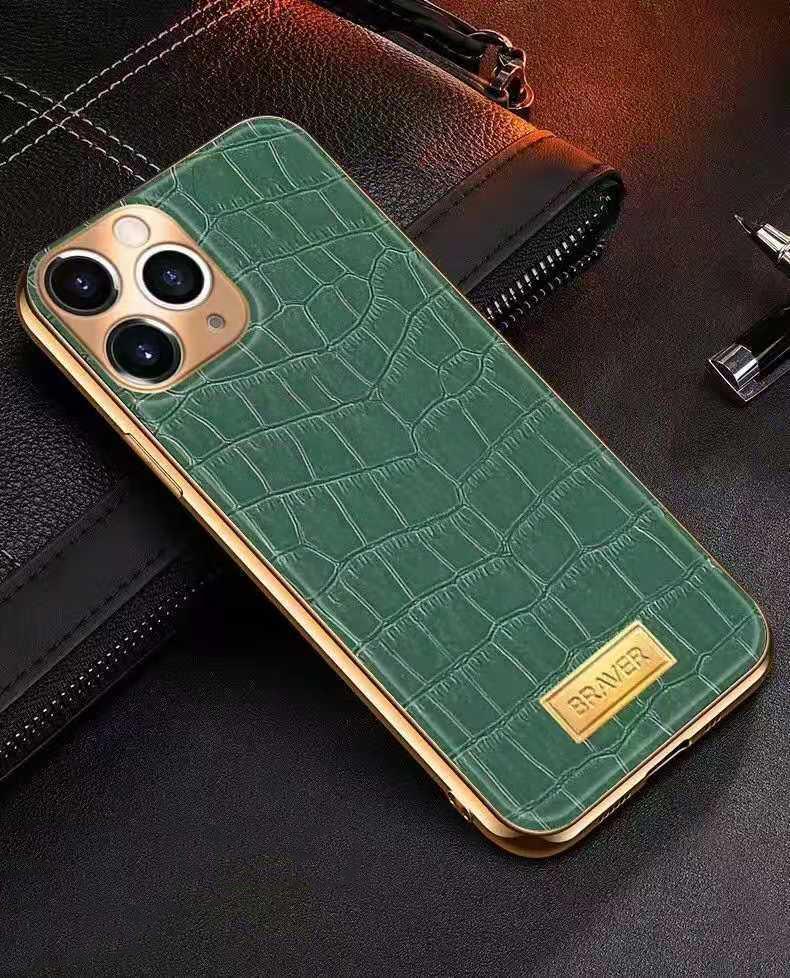 iPhone 12 Pro Skal äkta läder krokodilmönster guldpläterad hög lyx