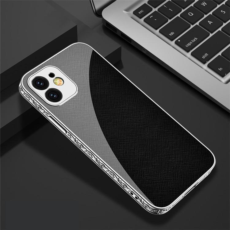 iPhone 13 Pro lyxigt glas-skal guld & silver barock elegant svart