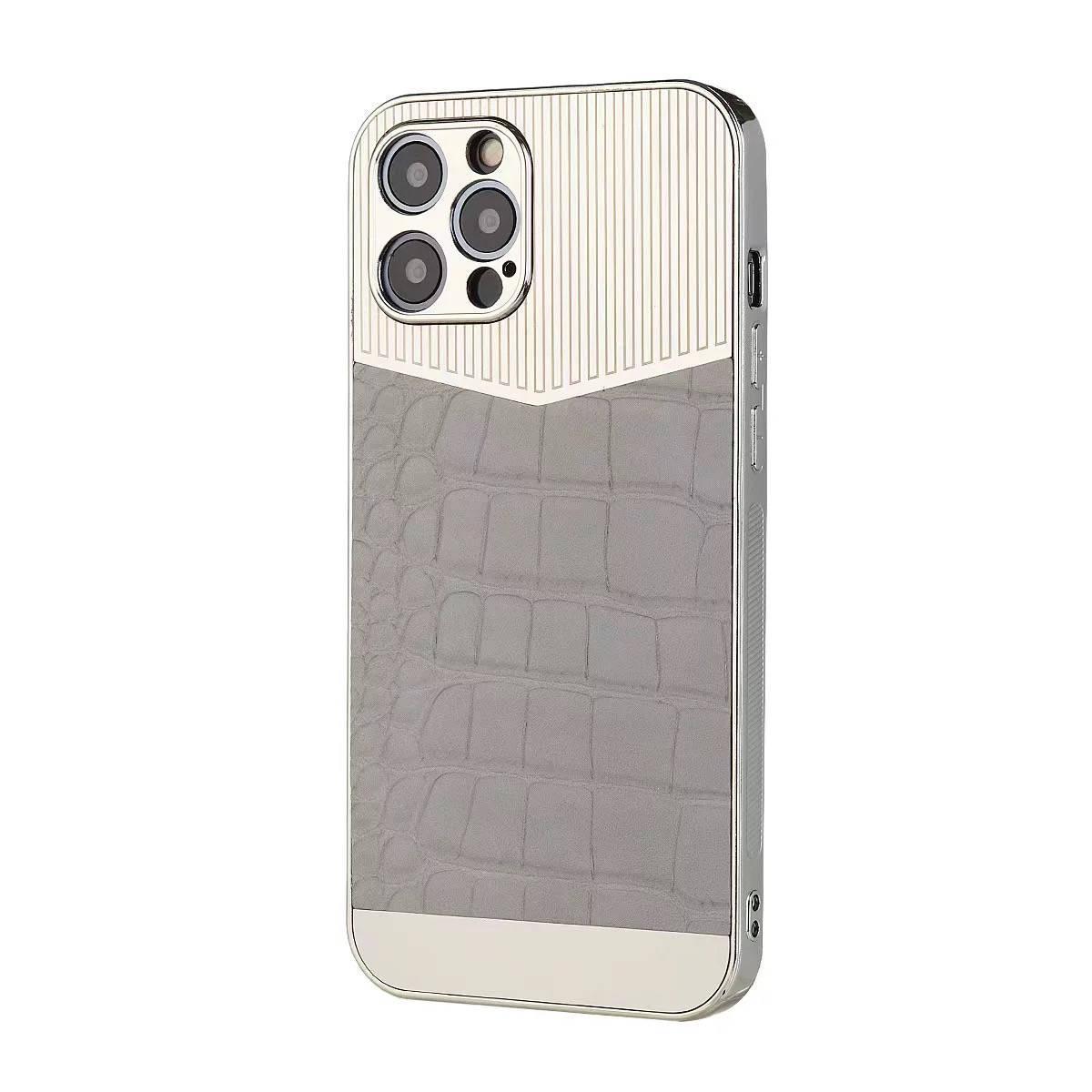iPhone 13, Pro & Max elektropläterat skal med veganskt läder lyx