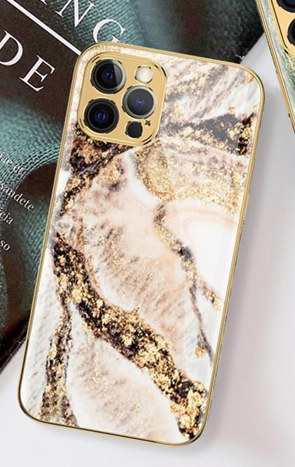 iPhone 13 Pro Max Lyx glas skal guld barock elegant rokoko marmor