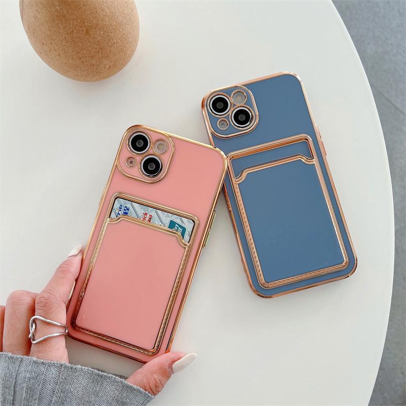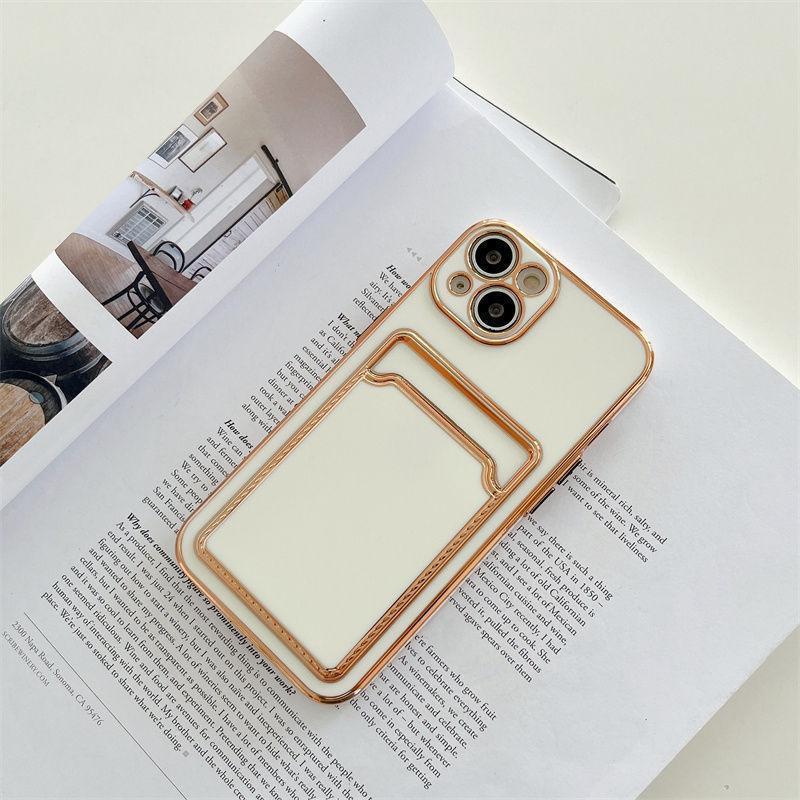 iPhone 13 Pro Max skal plånbok korthållare silikon vit rosa guld