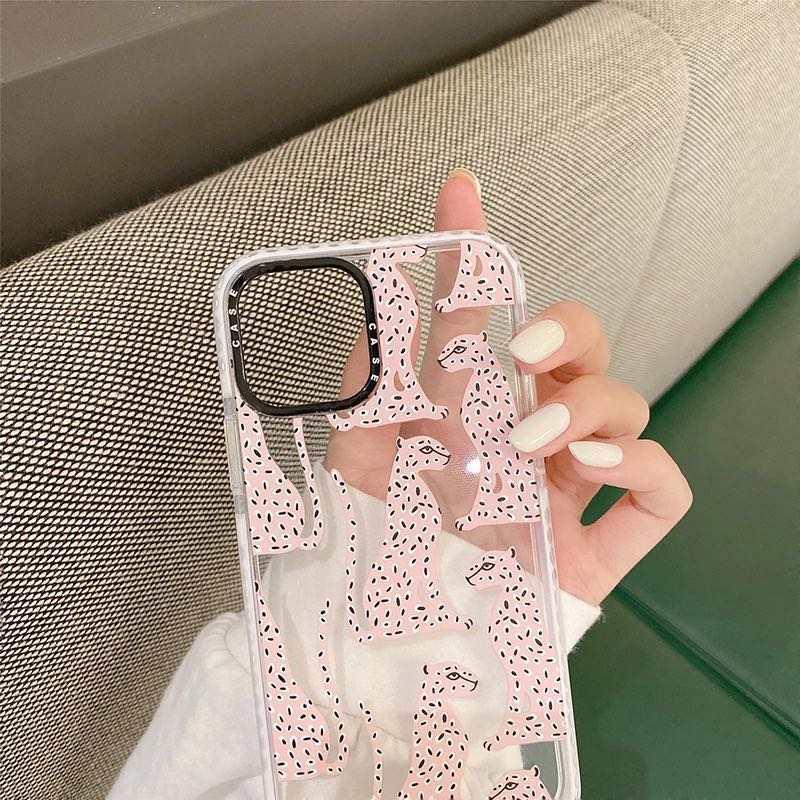 iPhone 13, Pro & Max transparent skal med rosa leoparder