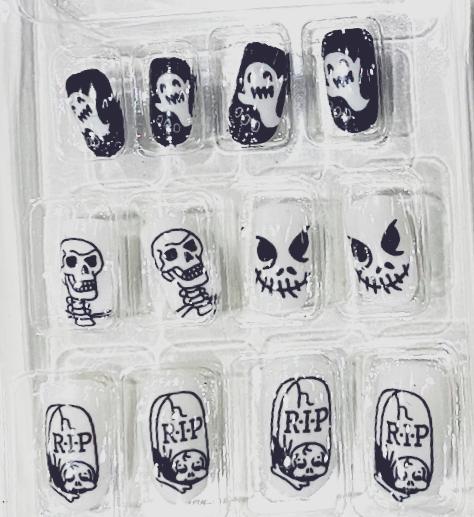 Lösnaglar med halloween tema spöke skelett döskalle gravsten
