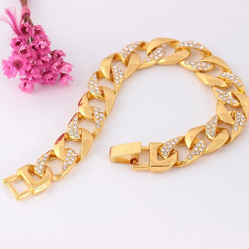 Lyxigt 18K guldpläterat armband med strass Hip hop