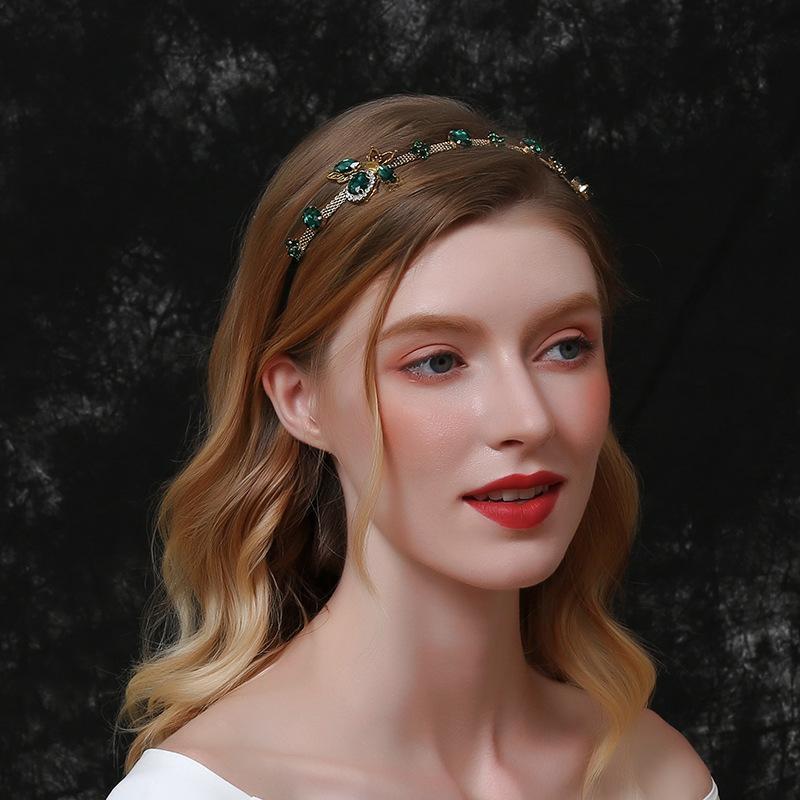 Lyxigt diadem med ädelstenar och broscher insekt guld grön