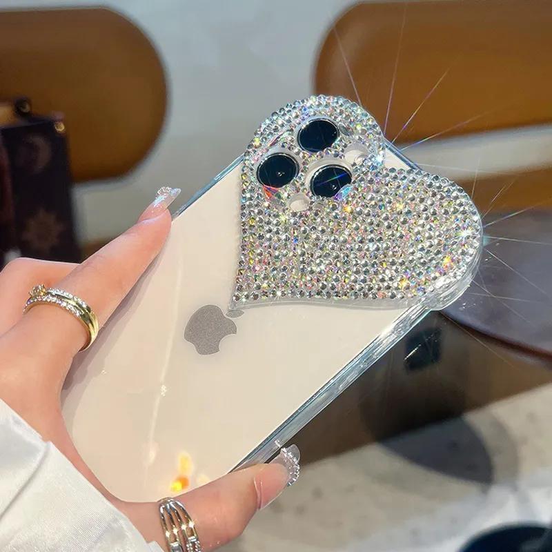 Lyxigt Mobilskal iPhone 14 Pro Bling Bling Kristall Diamant Hjärta Genomskinligt