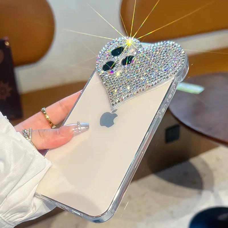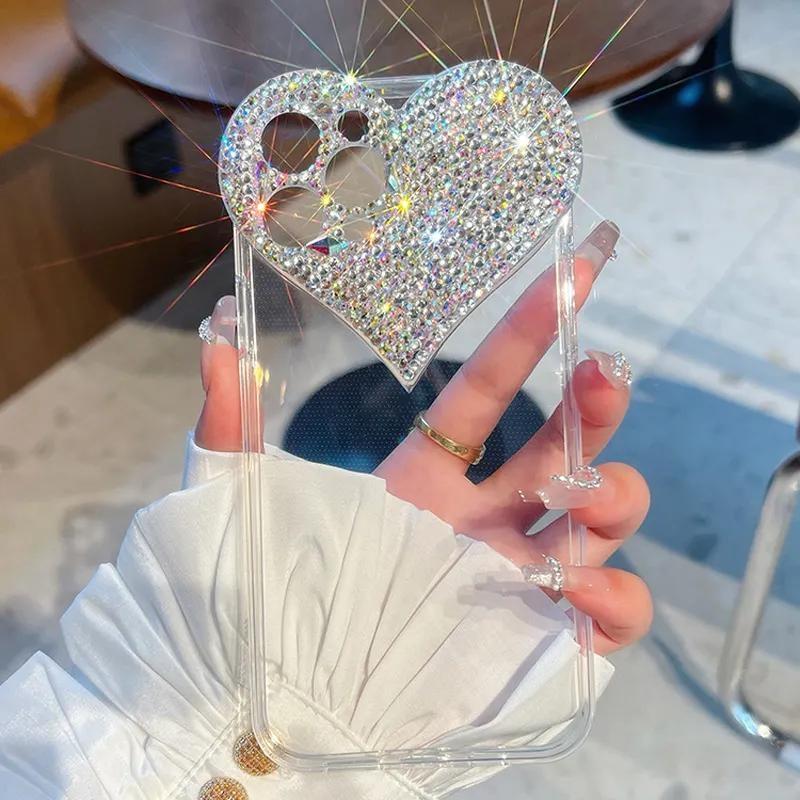Lyxigt Mobilskal iPhone 14 Pro Max Bling Bling Kristall Diamant Hjärta Genomskinligt