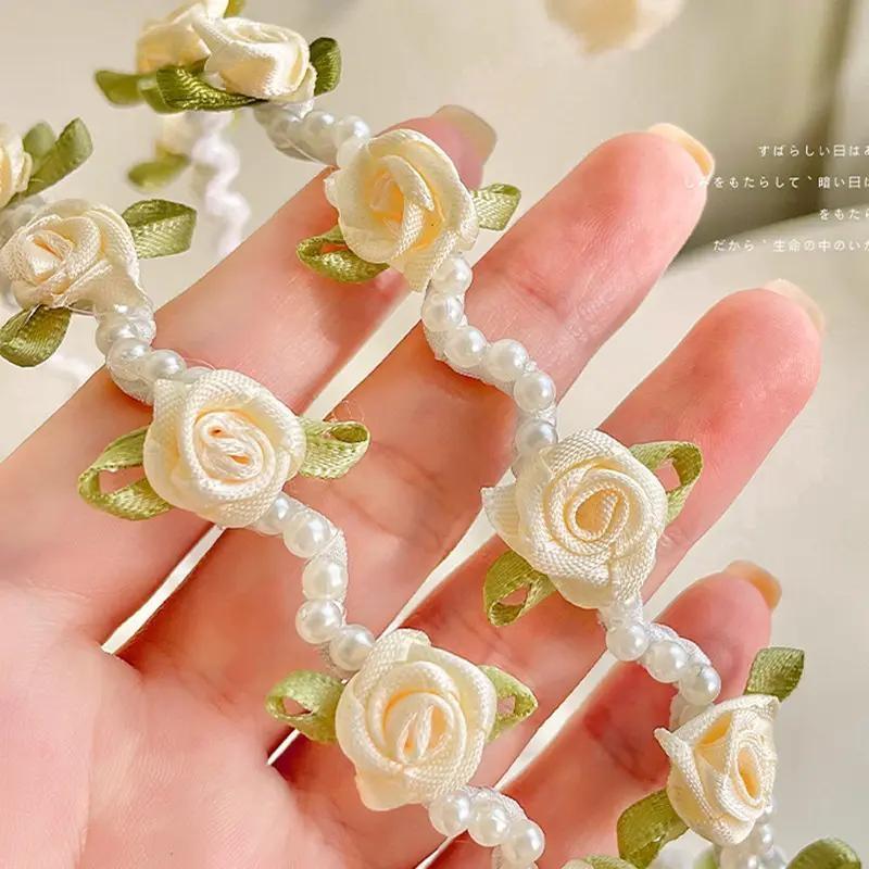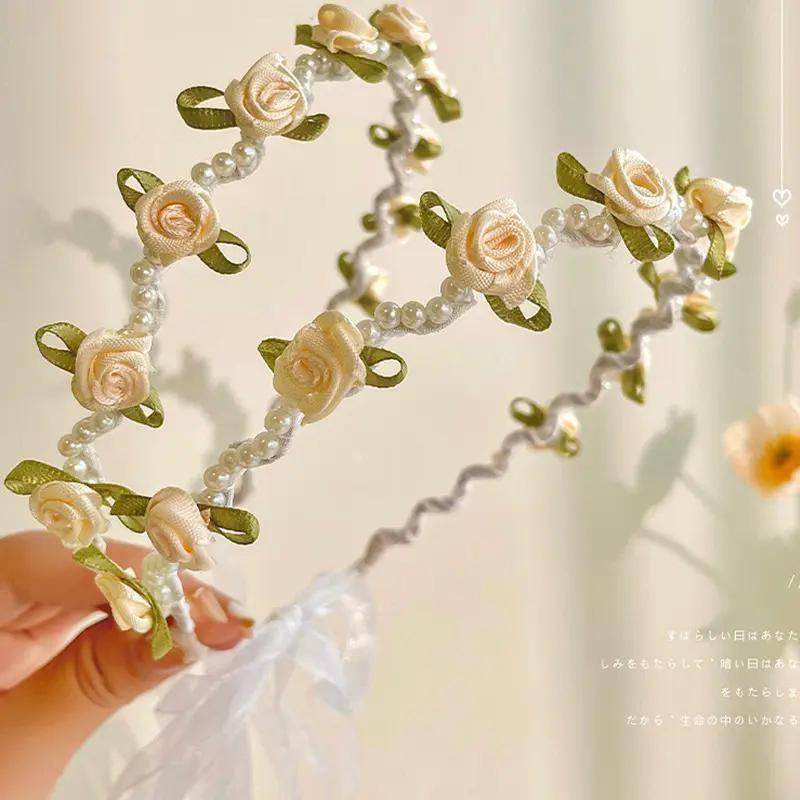 Midsommarkrans med pärlor och blommor diadem silkesband