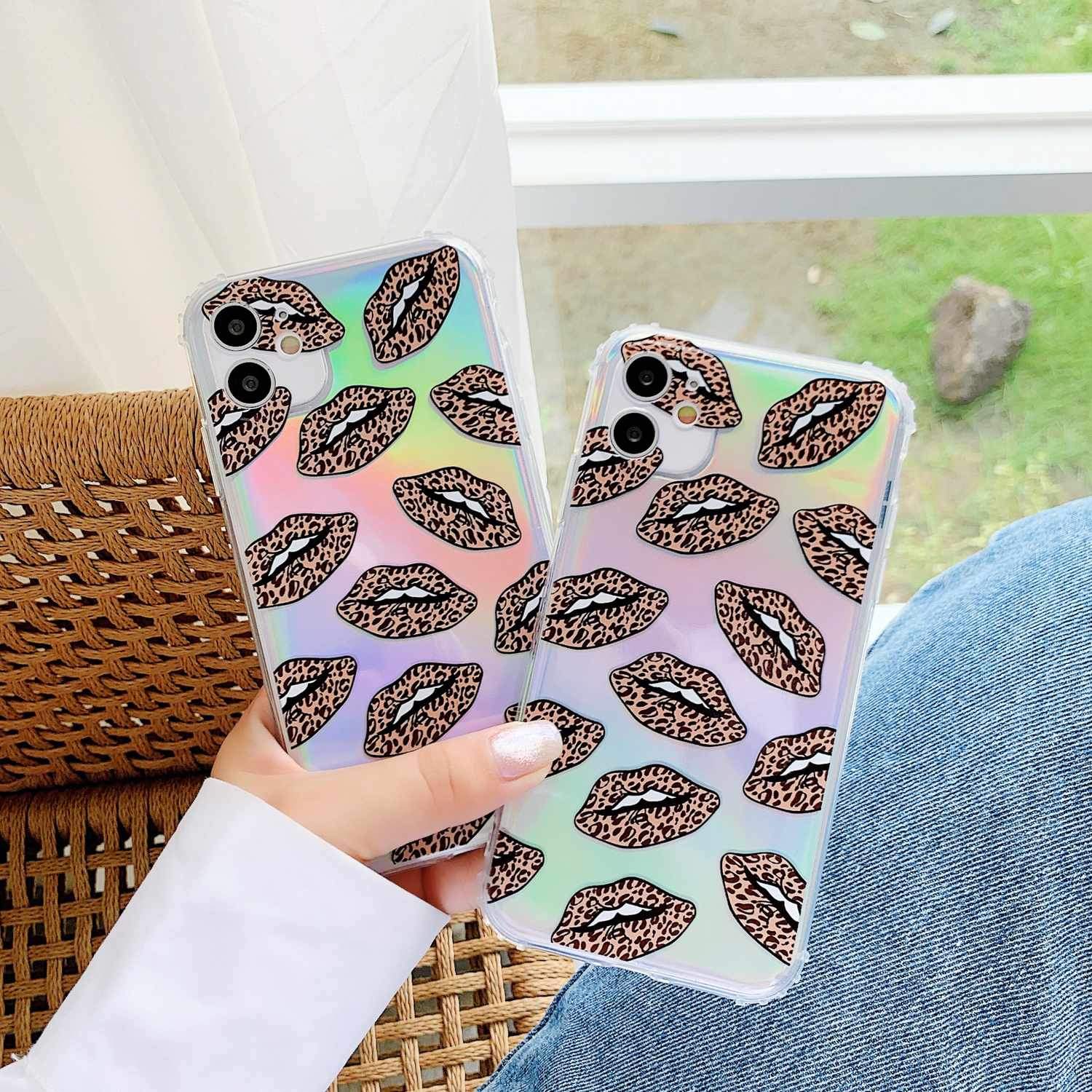 Mobilskal till iPhone11 Pro neonfärg med läppar leopardmönster