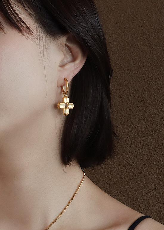 Noorzai Scandinavia - Örhängen med kors minimalistiska guld 18K